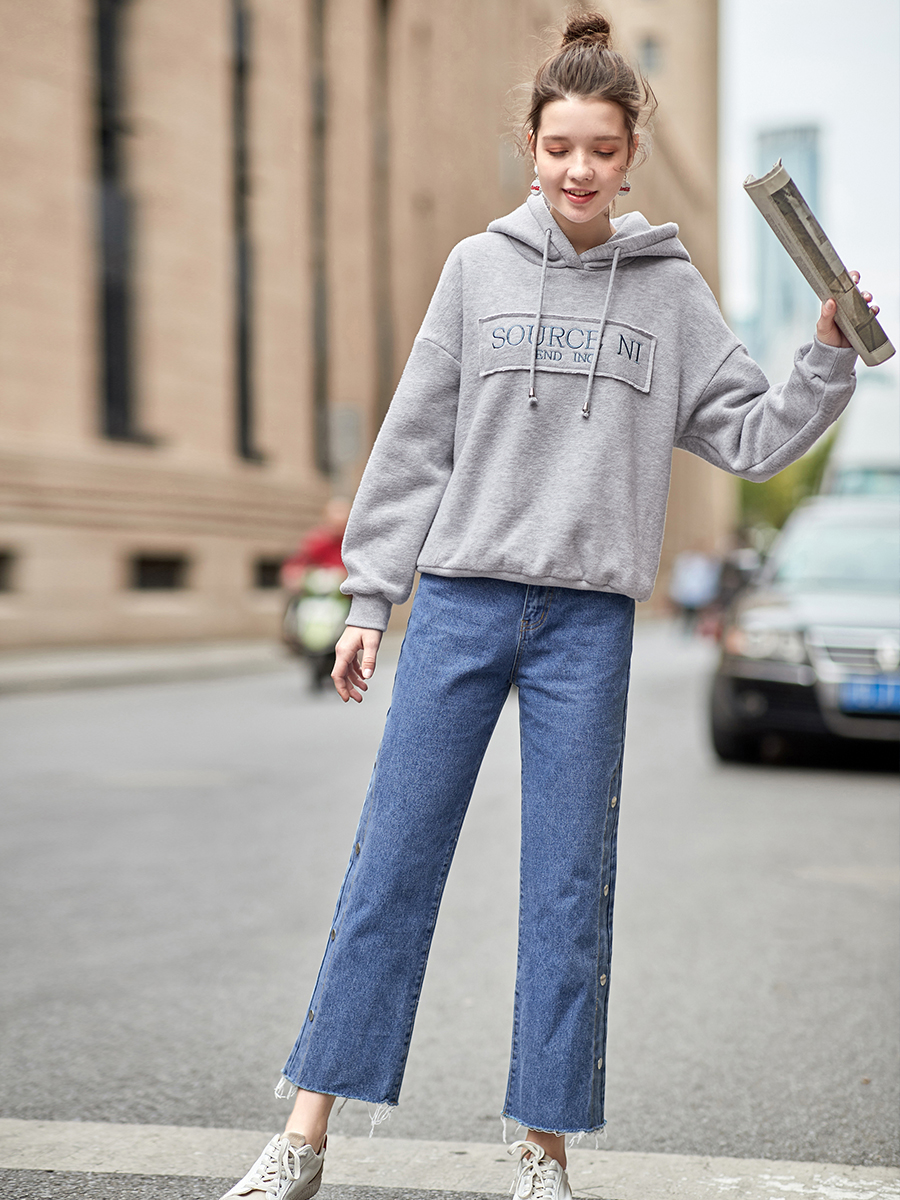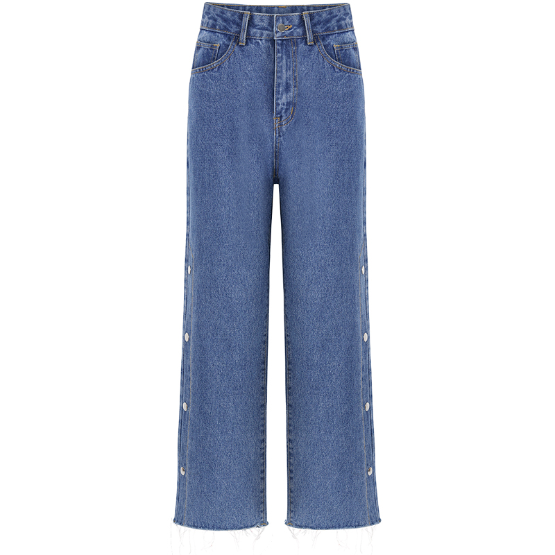 MG小象寬松高腰牛仔褲女冬季新款個性chic直筒褲學生寬松復古褲子