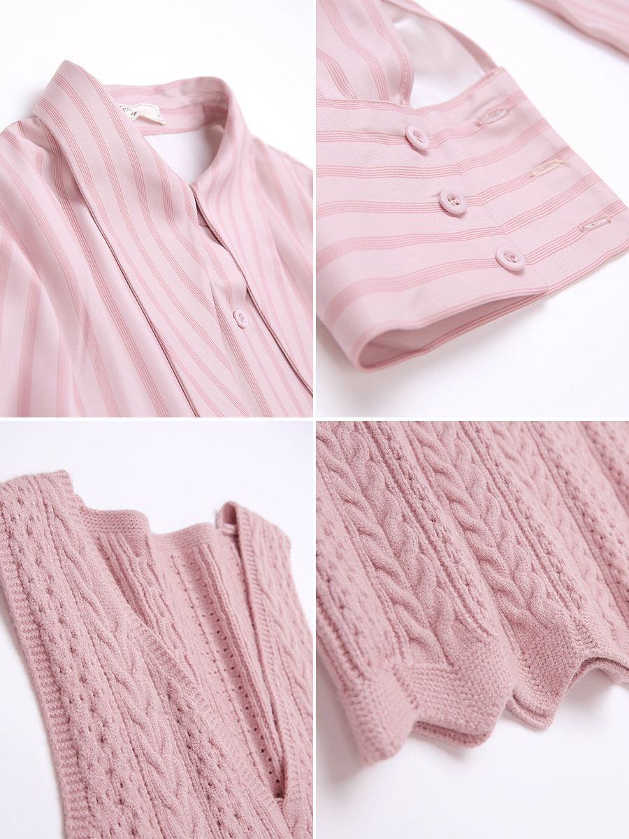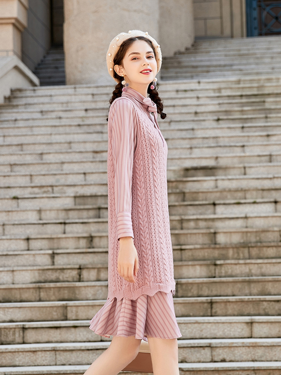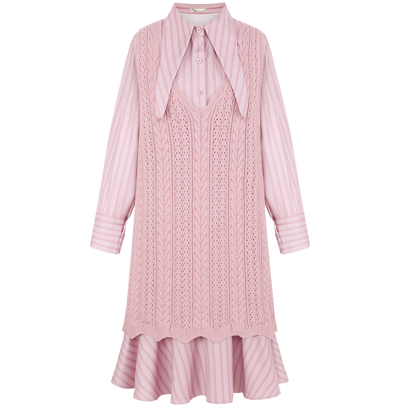 MG小象中長款條紋連衣裙女2018新款寬松針織背心長袖打底襯衫裙子