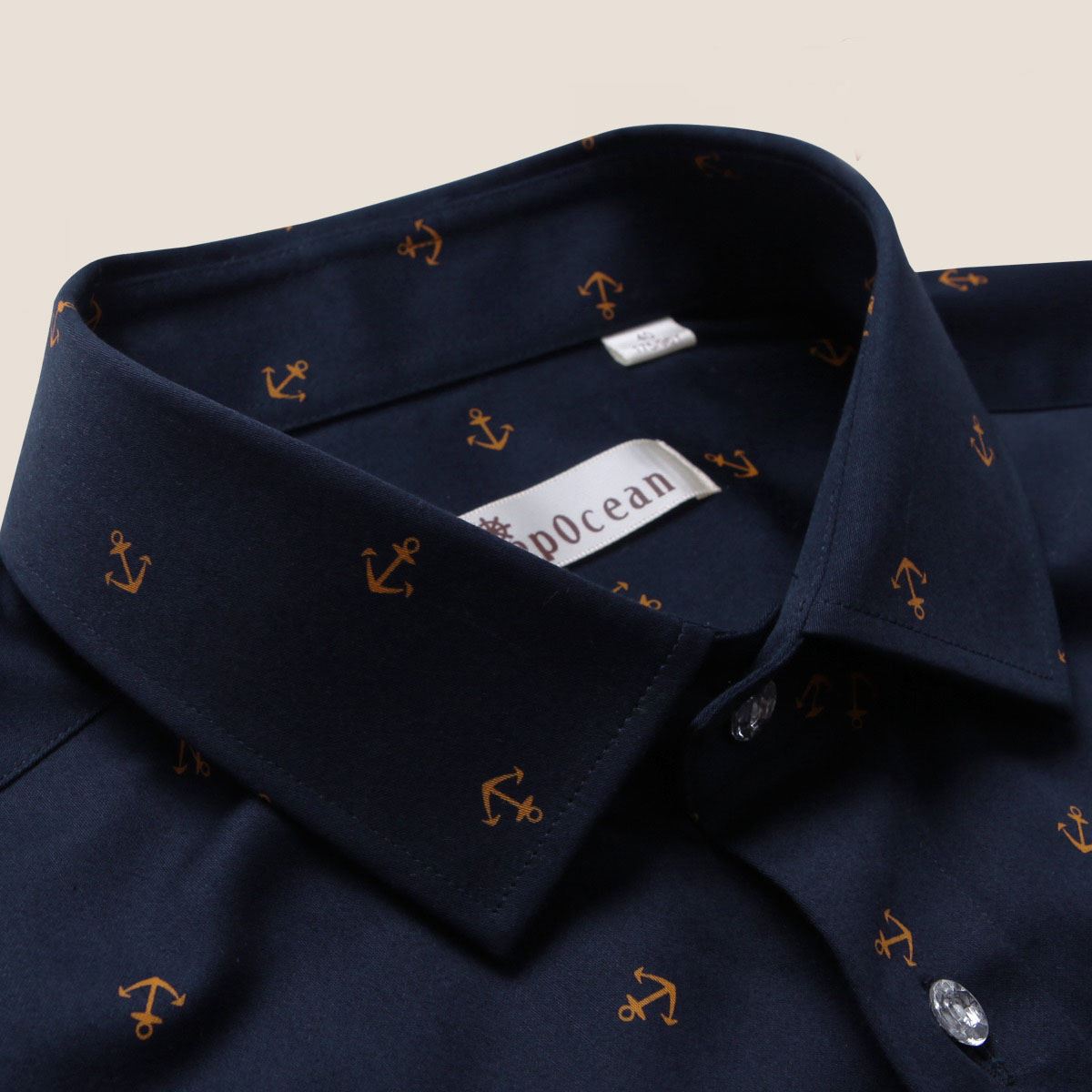 紅藍時尚拼接男長袖襯衫男士印花休閑韓版修身絲光棉純棉男裝襯衣