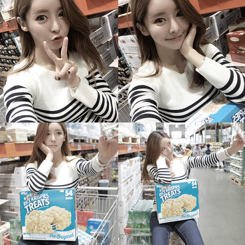 / 黑白條紋毛衣女春秋短款套頭打底毛衣女修身圓領針織打底衫女長袖