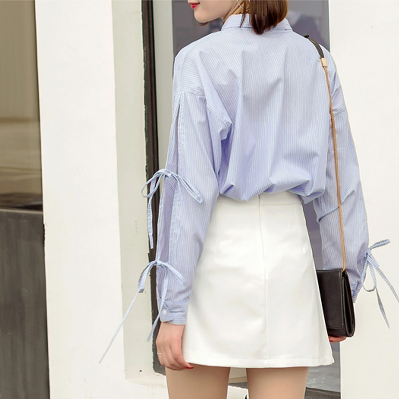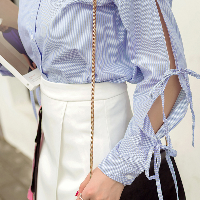 袖籠在蝴蝶結系帶的點綴下,嫵媚柔情
