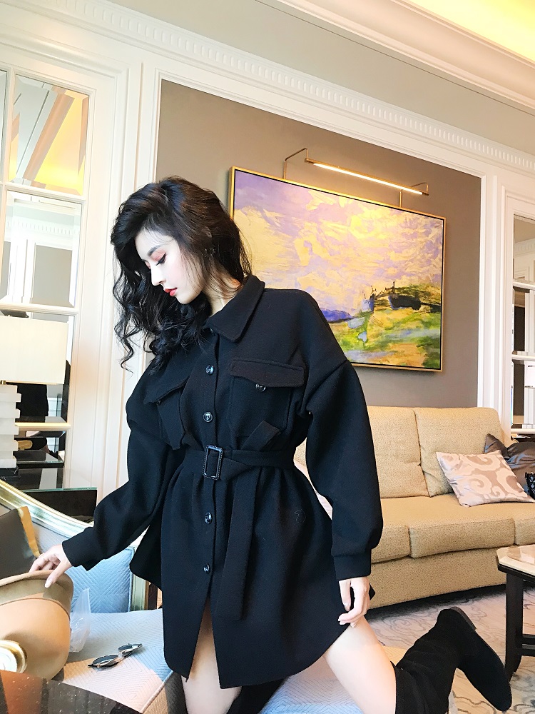 胸部有兩個口袋的設計很帥氣,腰帶系起來視覺上可以起到修身顯瘦的效果