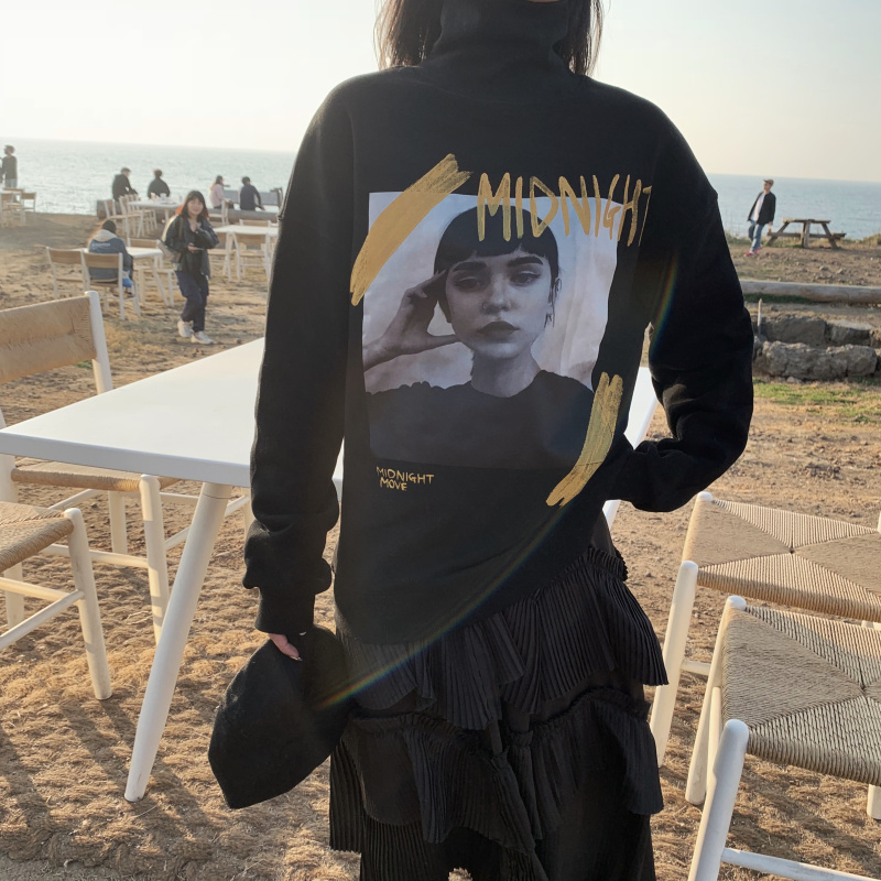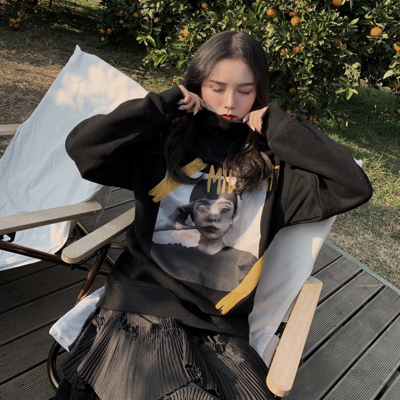 黑白色調的人像印花搭配明艷的字母印花,給人強烈的視覺沖擊