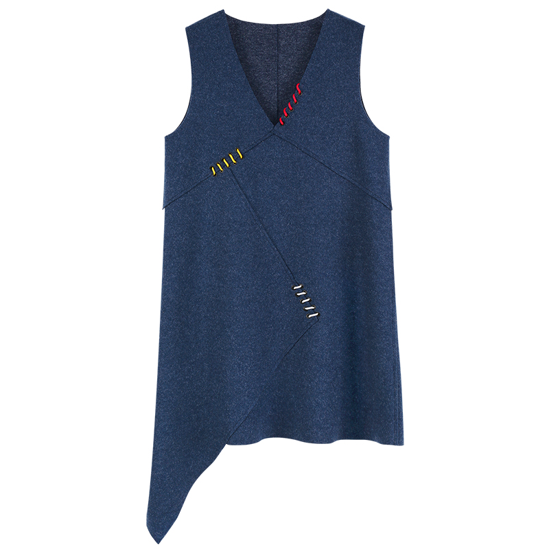 MG小象不規則連衣裙女2018新款寬松無袖背心裙港味復古chic裙子潮
