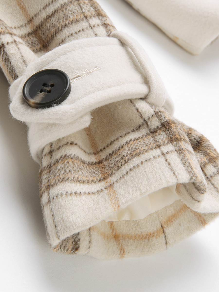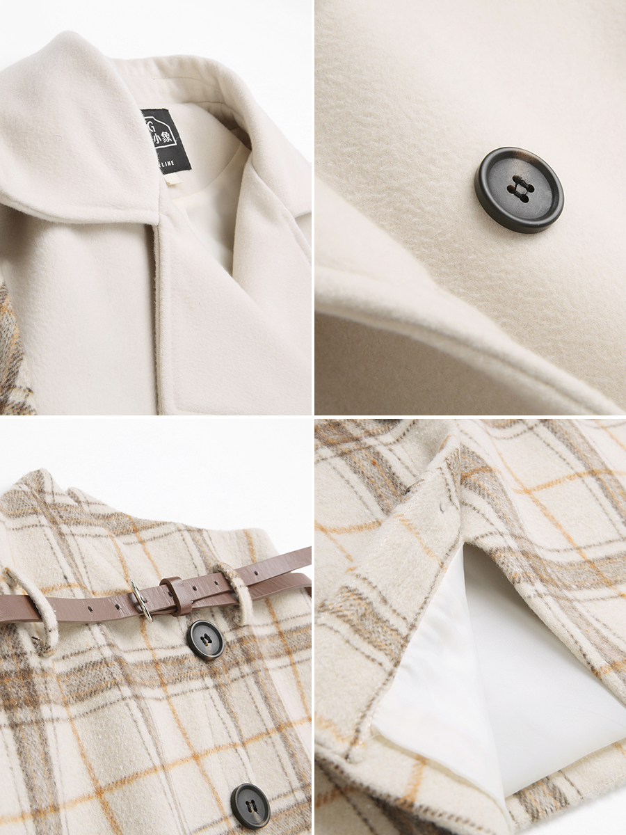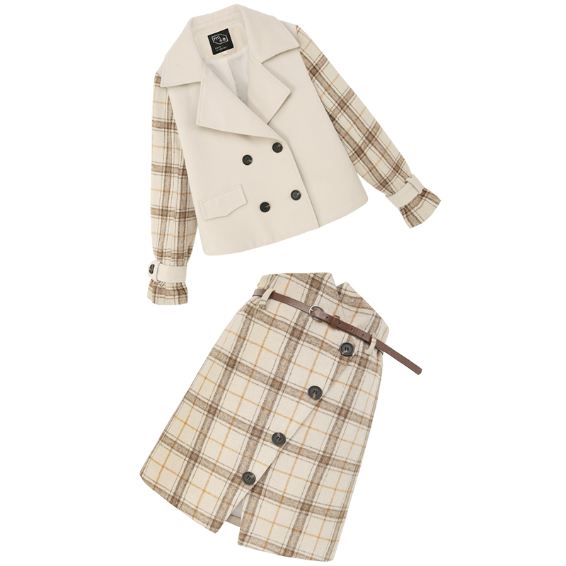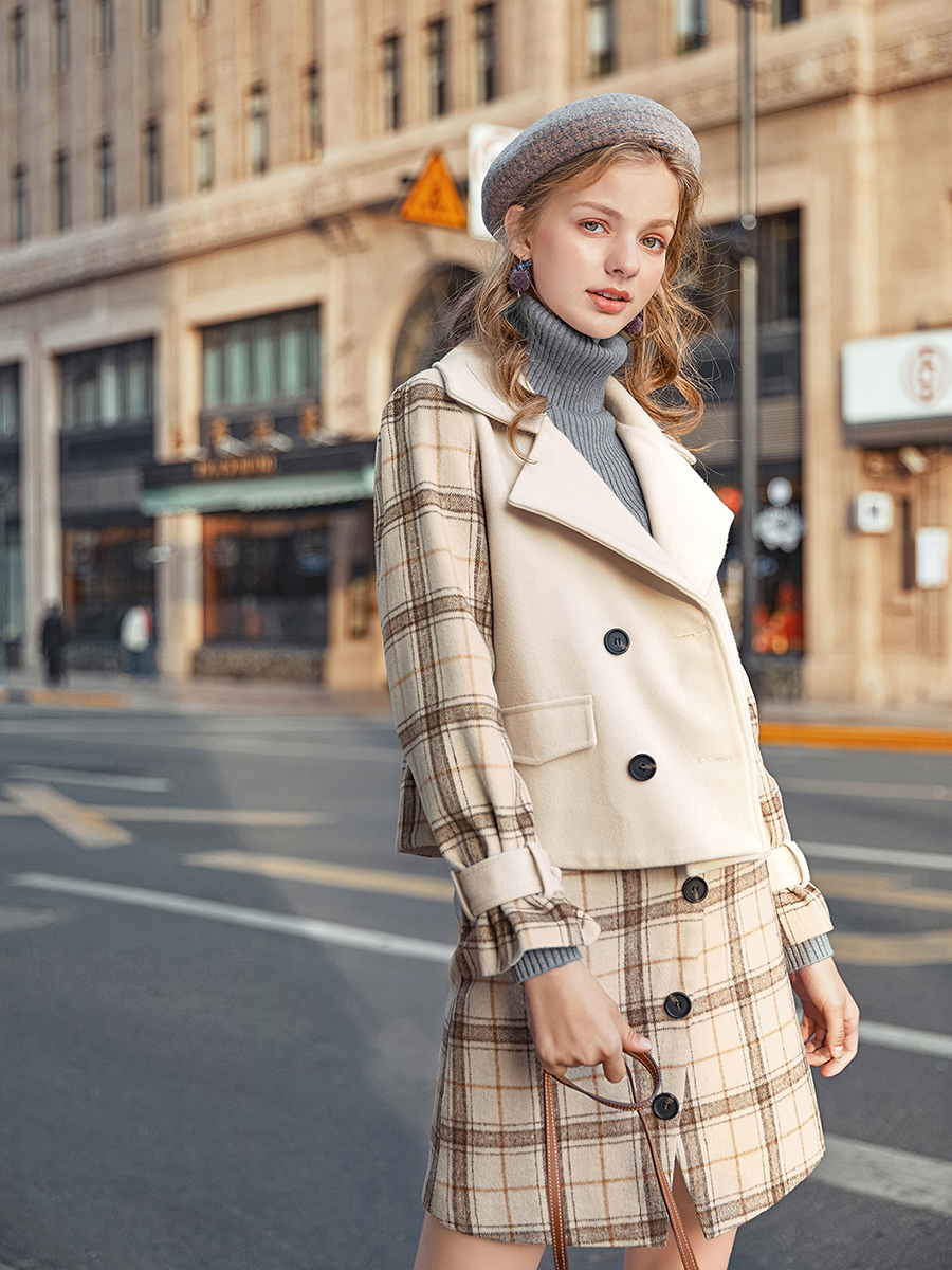 MG小象2018流行毛呢外套女冬新款格子高腰半身裙寬松短款呢子大衣