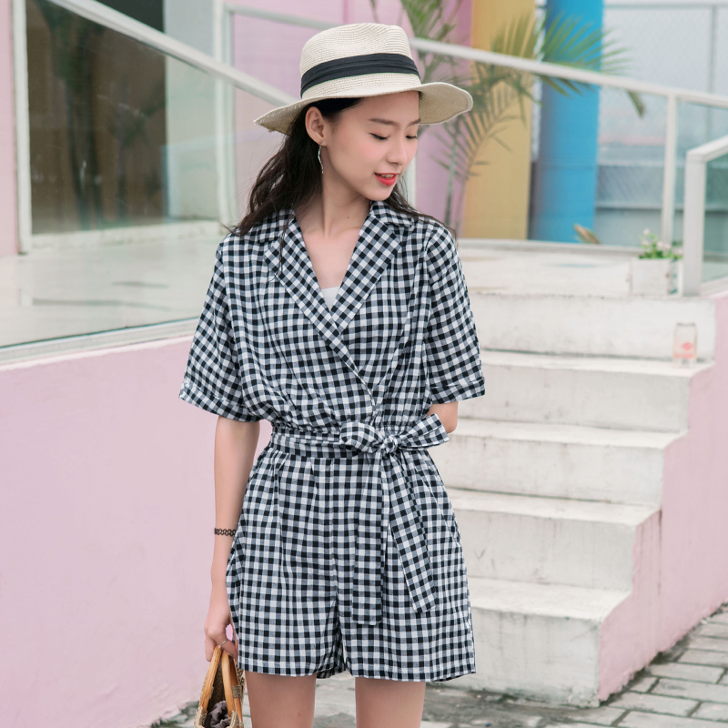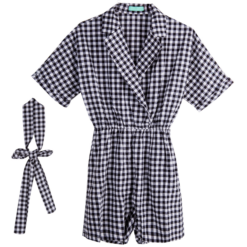 翻領格子連體褲,夏日懶人穿搭的裝備單品之一