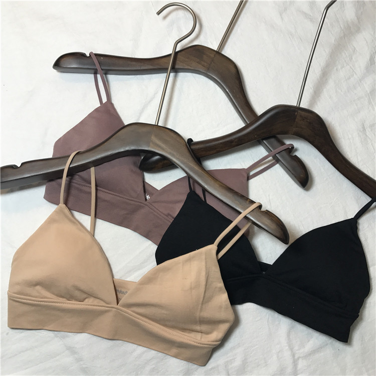 / 夏季2018新款簡約舒適無鋼圈三角杯細帶薄款文胸含襯墊睡眠內衣女