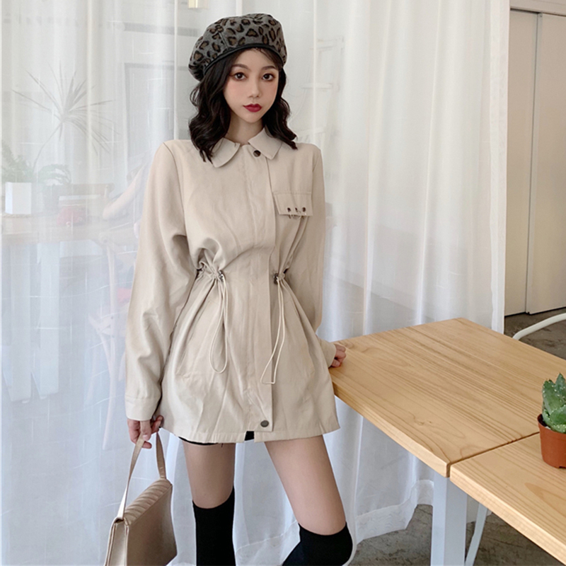 秋冬女裝2018新款chic港味翻領大衣系帶收腰顯瘦風衣學生時尚外套
