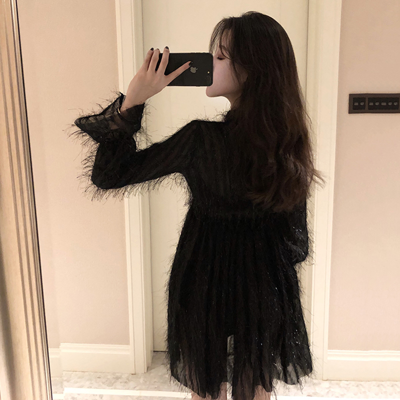 毛衣配裙子兩件套女秋冬裝新款寬松長袖針織衫時尚流蘇長袖連衣裙