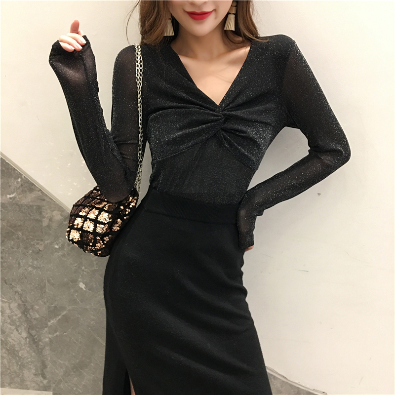 小衫女秋裝長袖套頭v領2018新款秋季裝時尚百搭顯瘦上衣打底衫潮