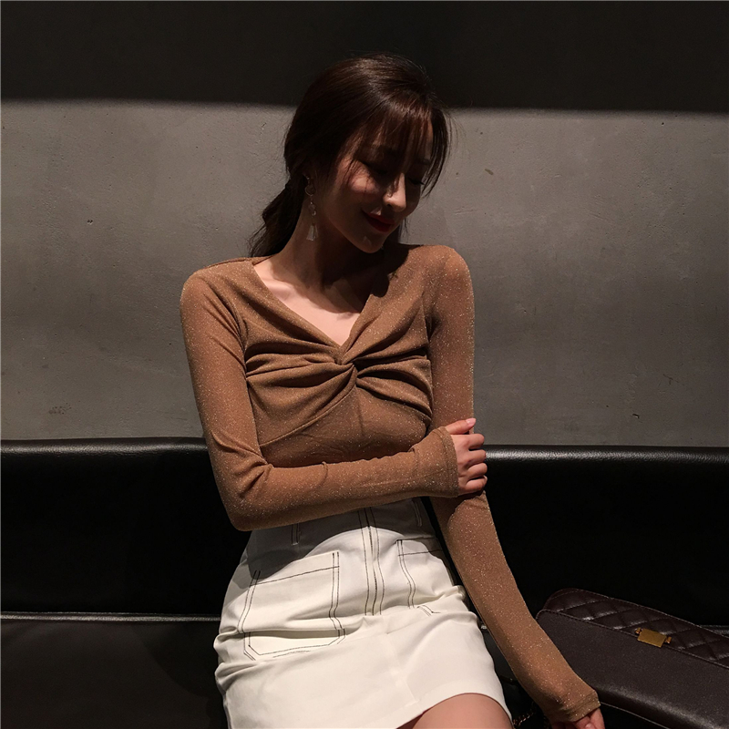 / 小衫女秋裝長袖套頭v領2018新款秋季裝時尚百搭顯瘦上衣打底衫潮