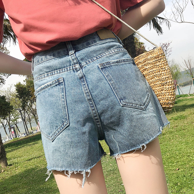 2018夏季新款女裝韓版寬松顯瘦高腰撕邊牛仔熱褲休閑百搭闊腿短褲