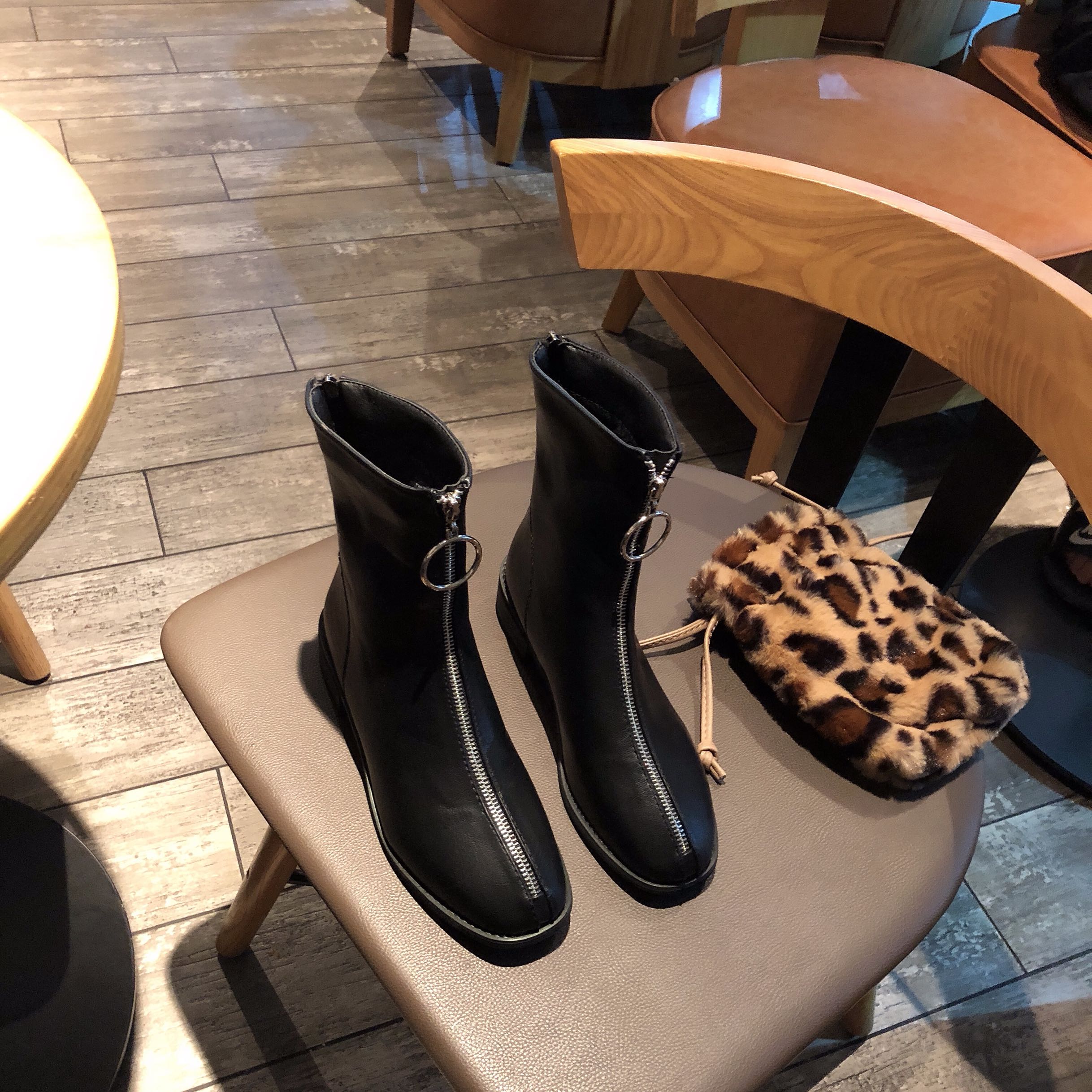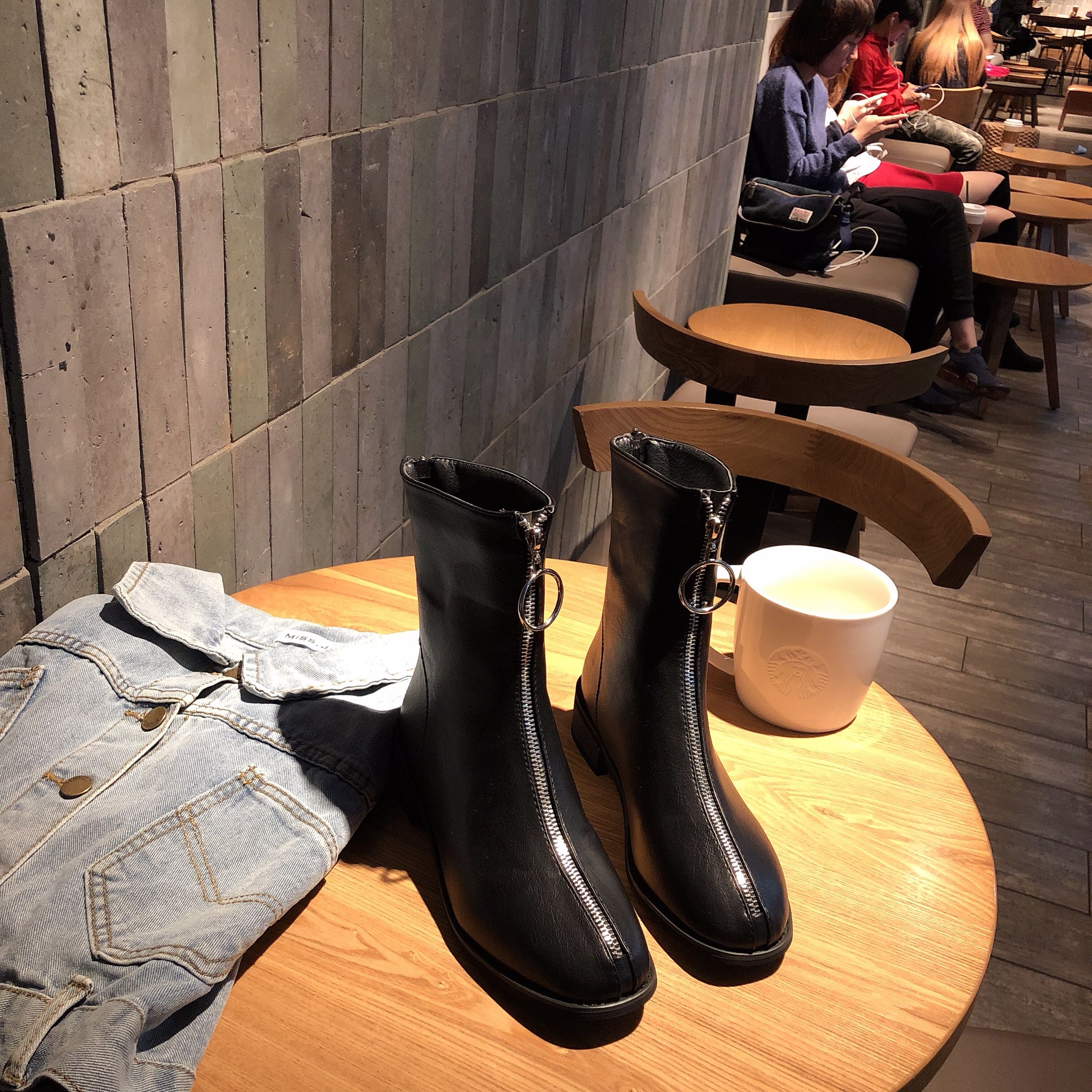 新款韓版網紅女靴子秋冬中筒時裝靴加絨前拉鏈氣質百搭女鞋靴子潮