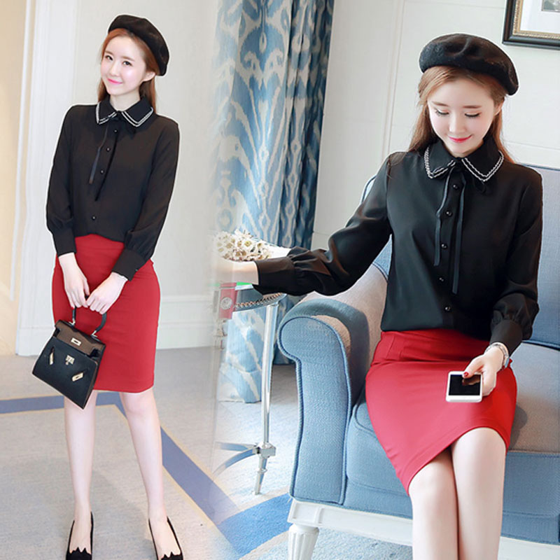 白襯衫女長袖春裝新款韓版百搭韓范立領蝴蝶結系帶雪紡襯衣女