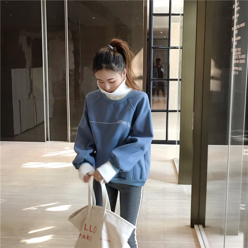 / 韓版假兩件毛呢料衛衣女秋冬2018新款套頭加厚寬松高領長袖上衣潮