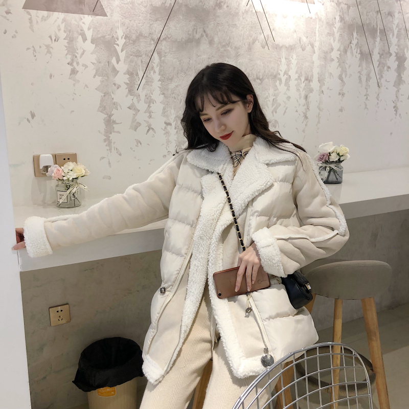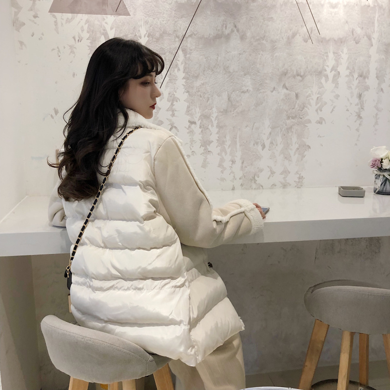 領子跟袖子是一體毛拼接羊羔毛的哈