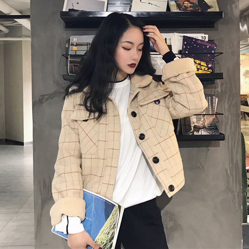 復古風短款格子流行呢子大衣女冬裝2018新款學生寬松翻領毛呢外套