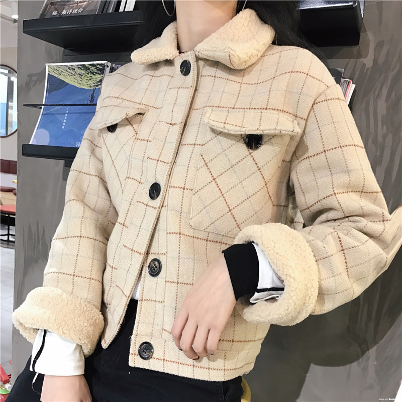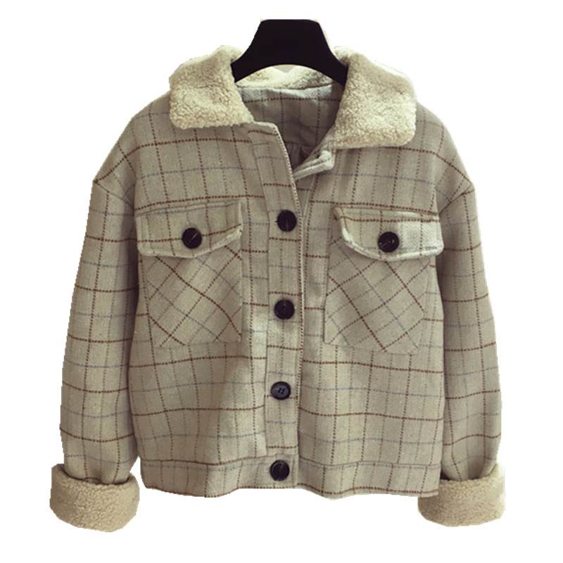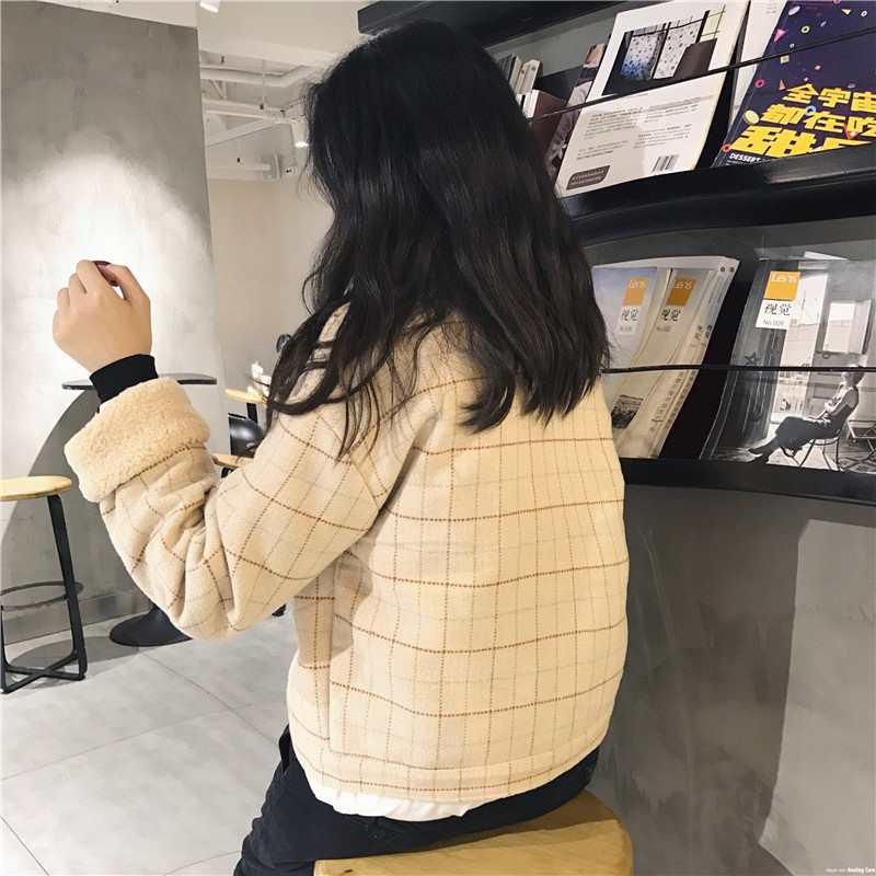 / 復古風短款格子流行呢子大衣女冬裝2018新款學生寬松翻領毛呢外套