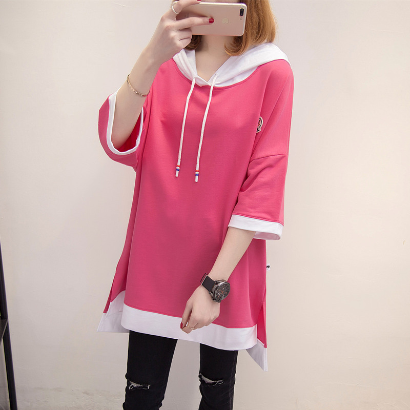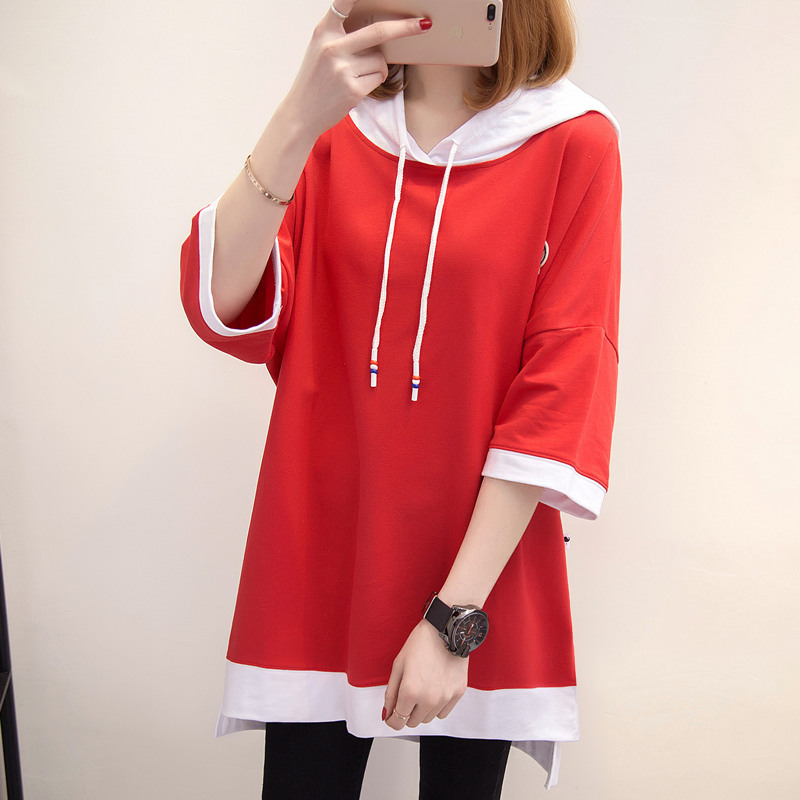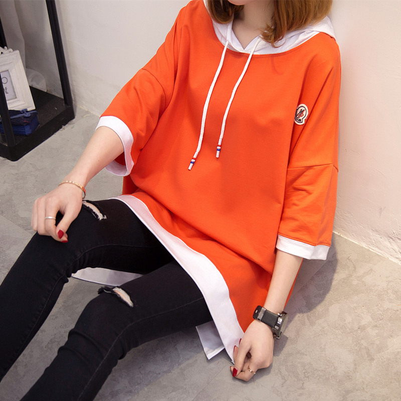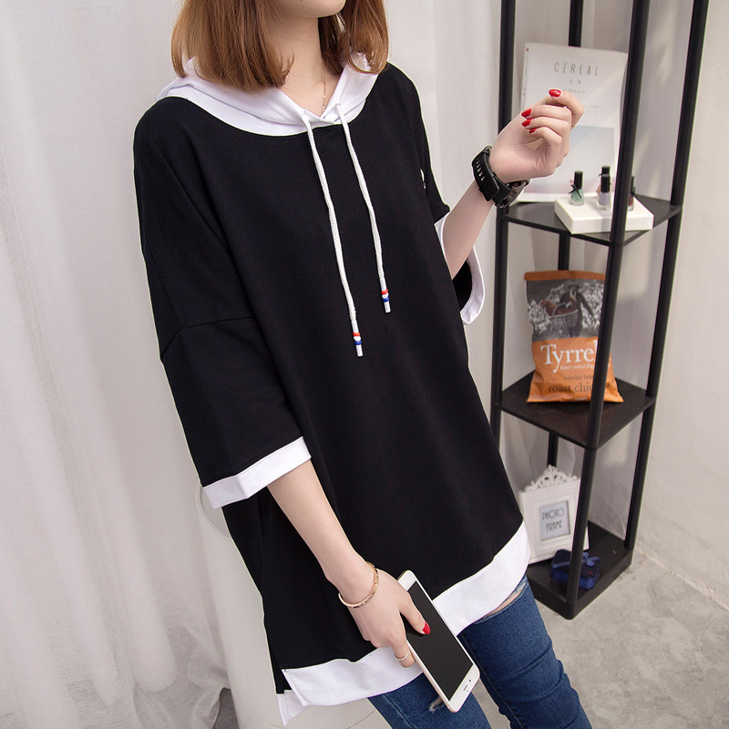 短袖上衣女夏新款寬松純色連帽t恤女春季韓版打底體恤衫百搭