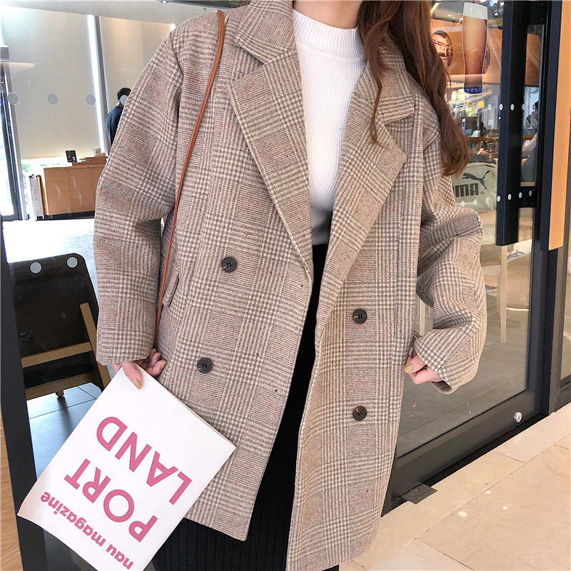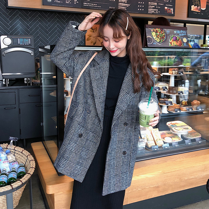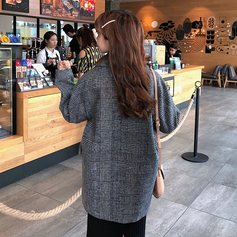 / 秋裝女2018新款復古格子中長款毛呢外套寬松長袖上衣時尚休閑西裝
