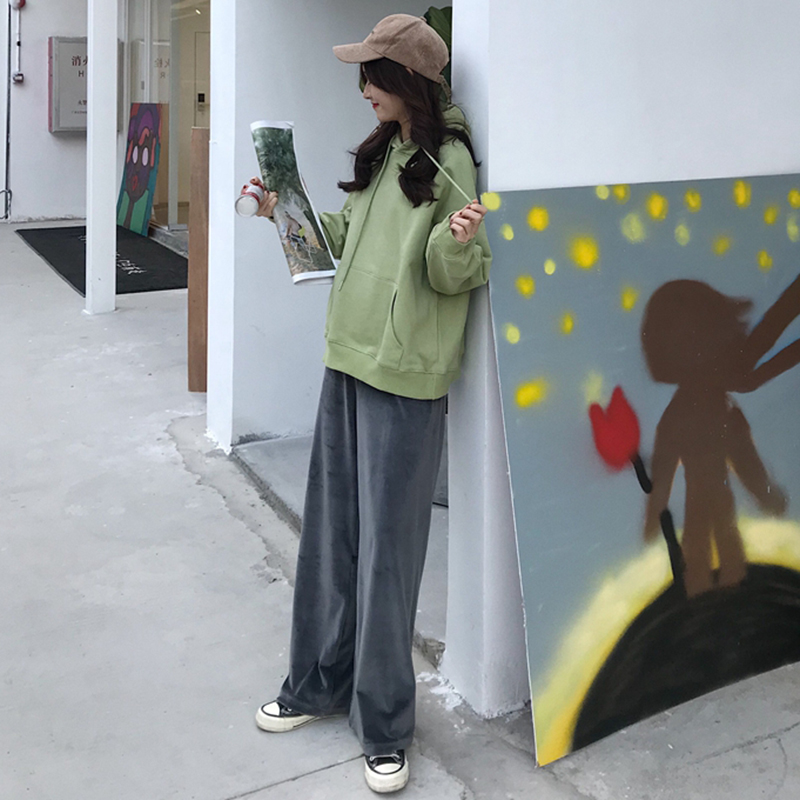 洋氣套裝女秋冬新款韓版簡約寬松連帽衛衣高腰顯瘦休閑闊腿長褲子