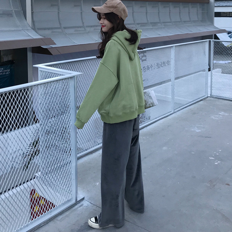/ 洋氣套裝女秋冬新款韓版簡約寬松連帽衛衣高腰顯瘦休閑闊腿長褲子