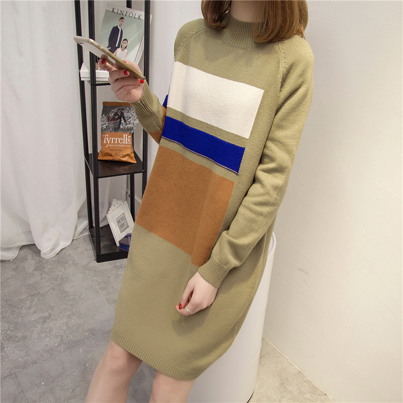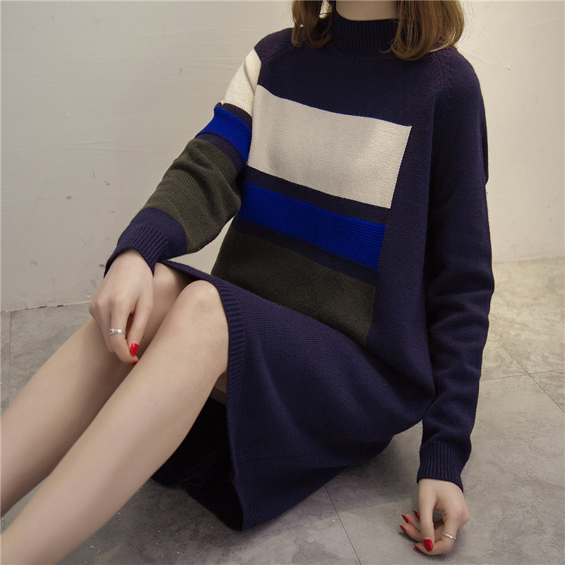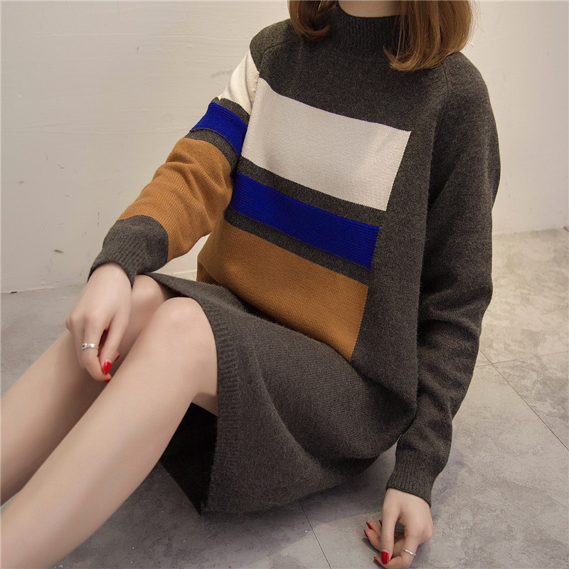 / 女裝冬裝新款潮套頭毛衣裙女秋冬中長款針織衫長款打底毛衣厚