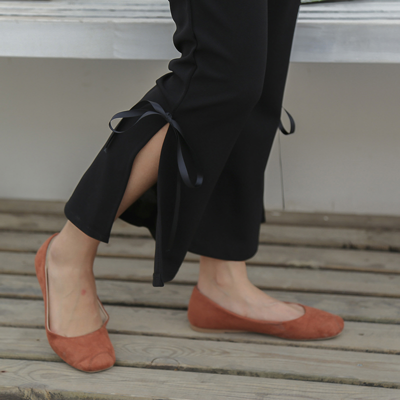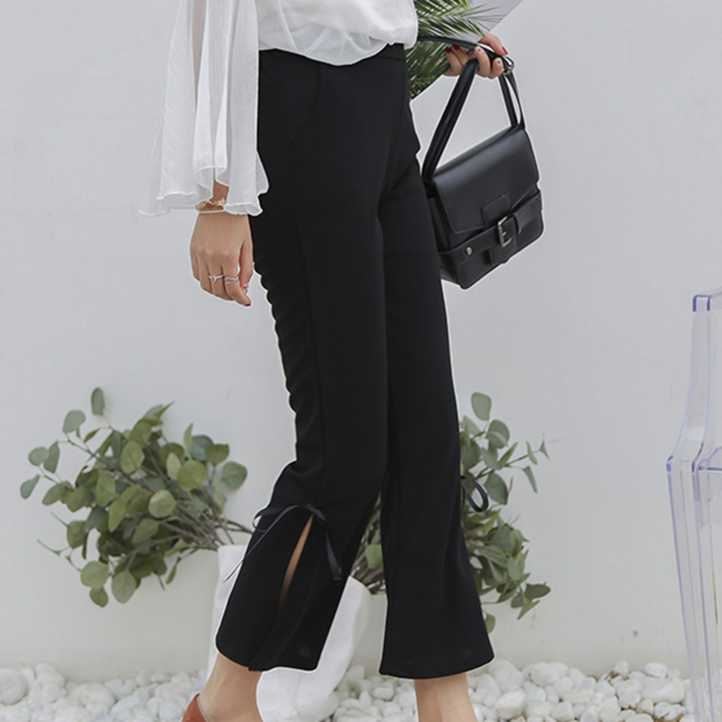 春夏新款女裝高腰修身顯瘦系帶側開叉微喇學生百搭九分休閑褲女