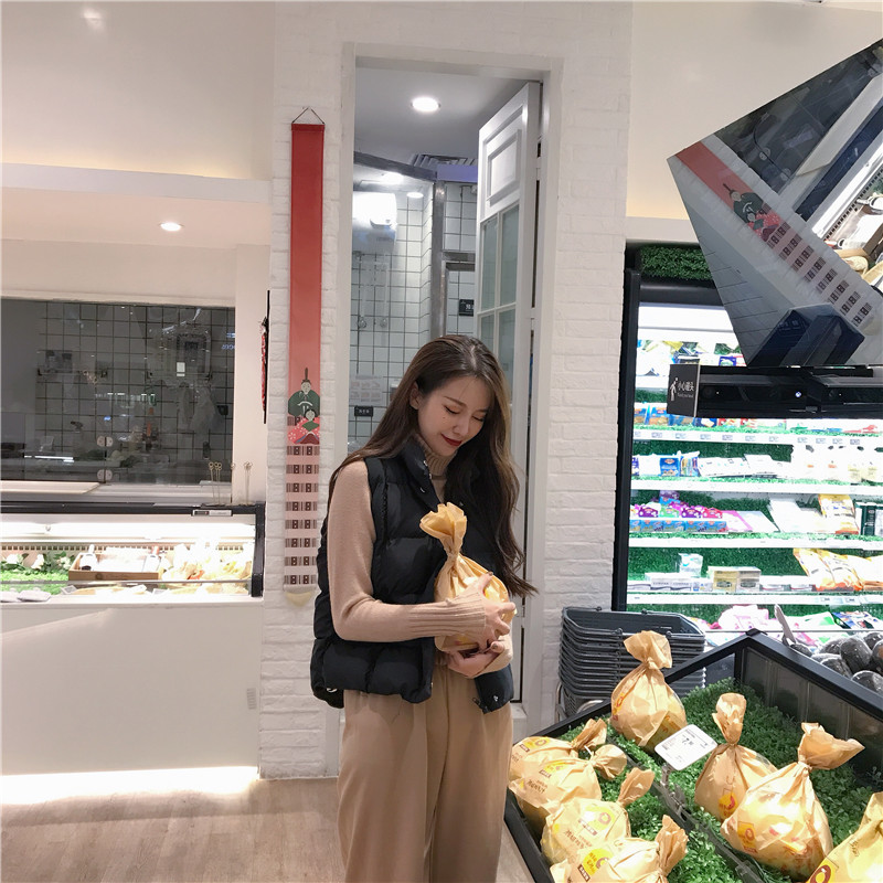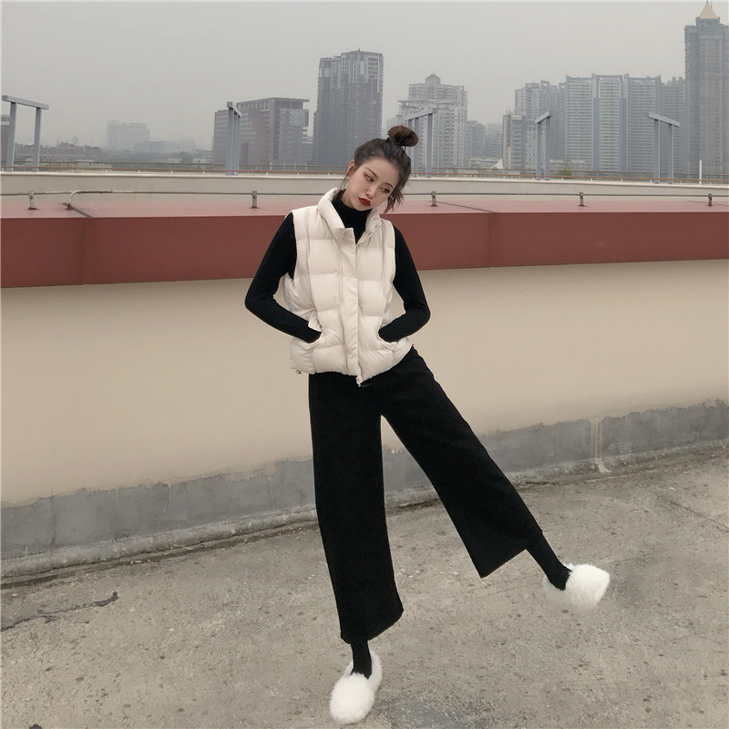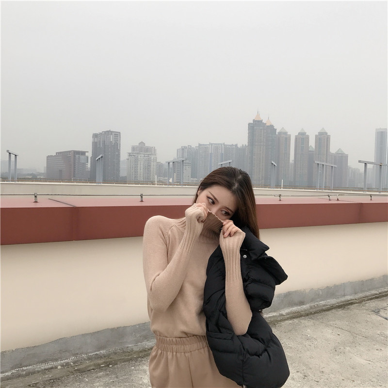 港味韓版秋裝女2018新款套裝棉衣馬甲+高領加厚打底針織衣兩件套