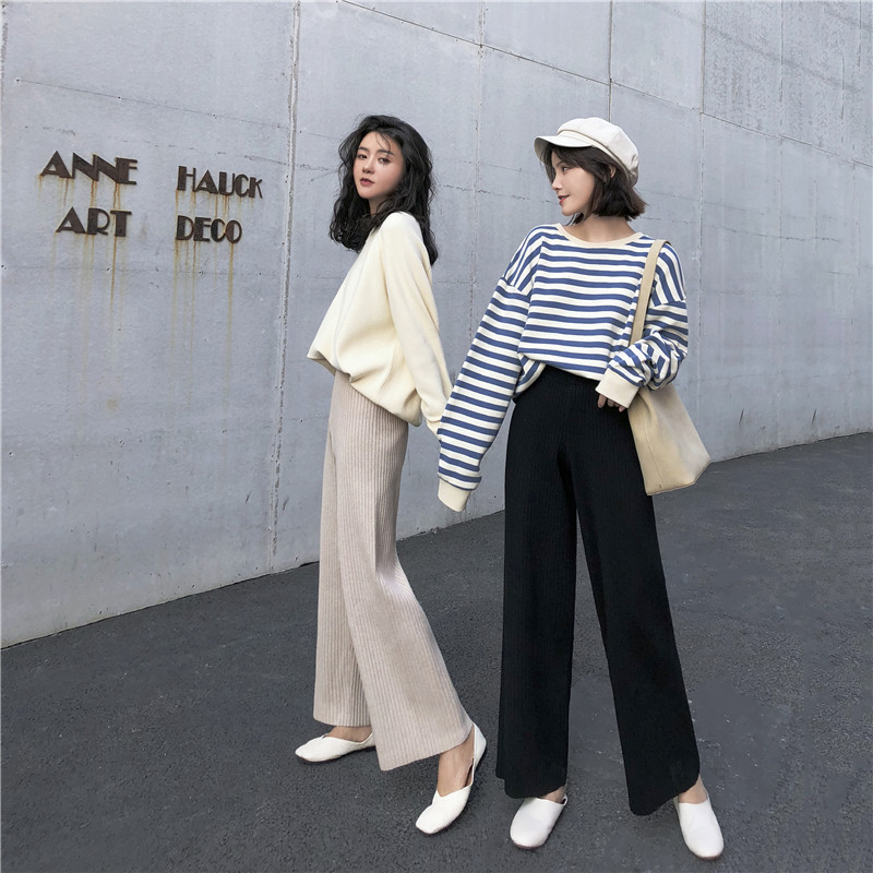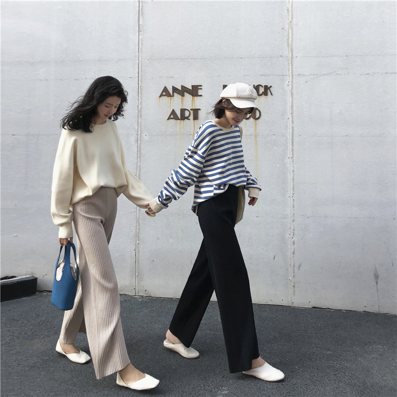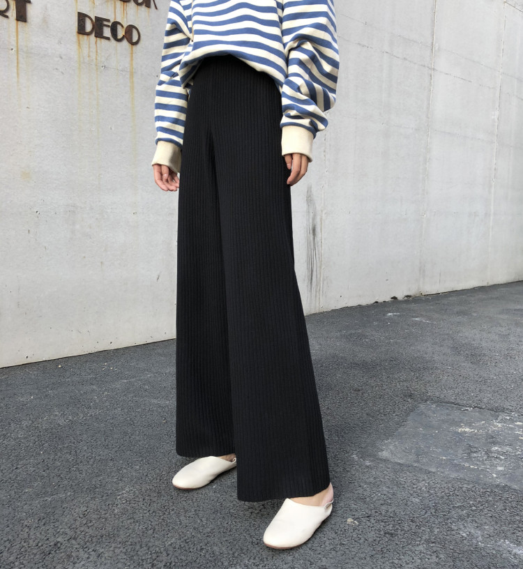 織闊腿褲的確很顯腿長,自然而然生出溫柔的感覺來