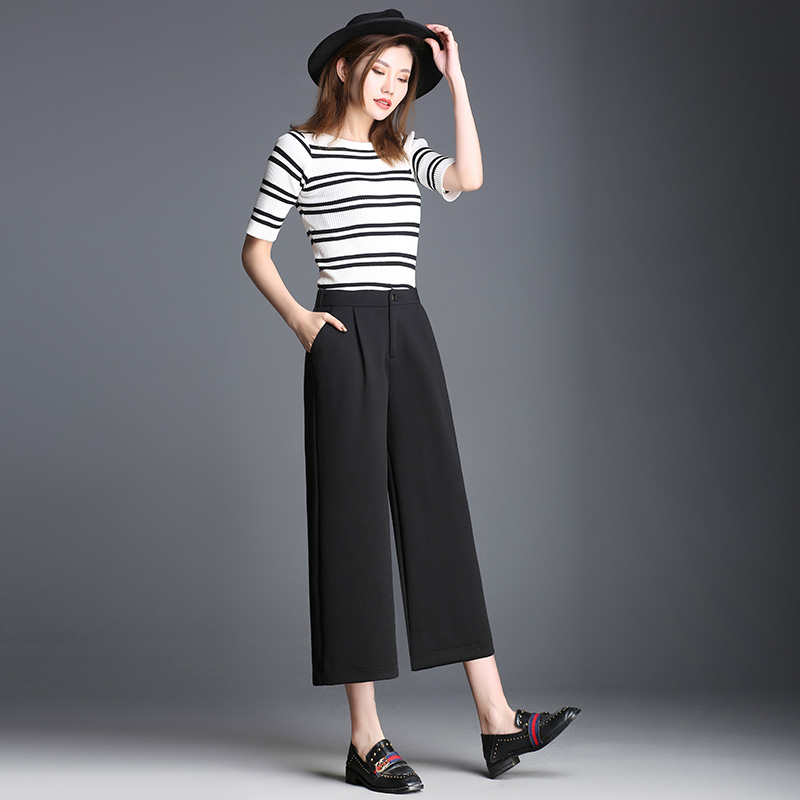 / 闊腿褲女九分褲春款休閑褲韓版寬松寬腳褲夏季女褲新款高腰西裝褲