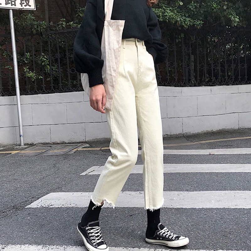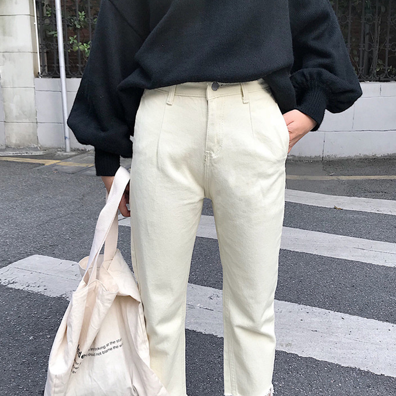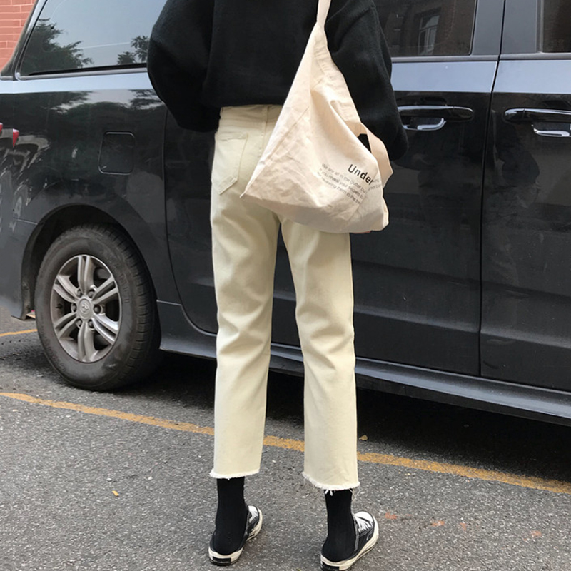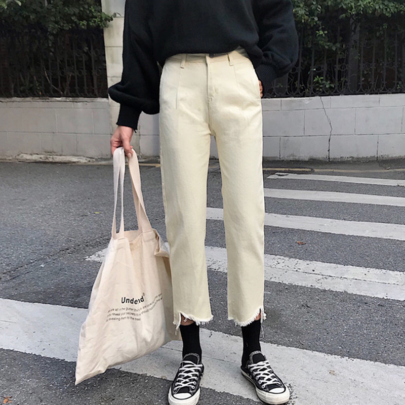 / 水洗牛仔褲女秋冬裝2018新款韓版不規則九分褲學生高腰顯瘦直筒褲