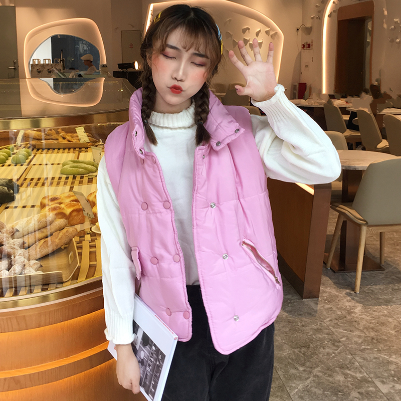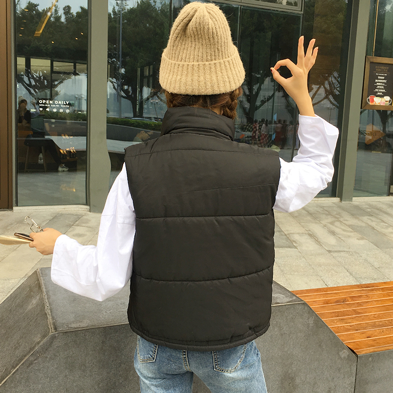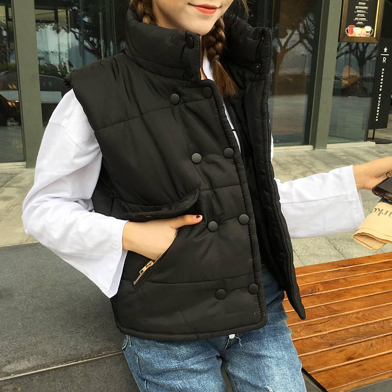 時尚寬松黑色棉馬甲2018冬季女裝新款無袖面包服學院風休閑短外套
