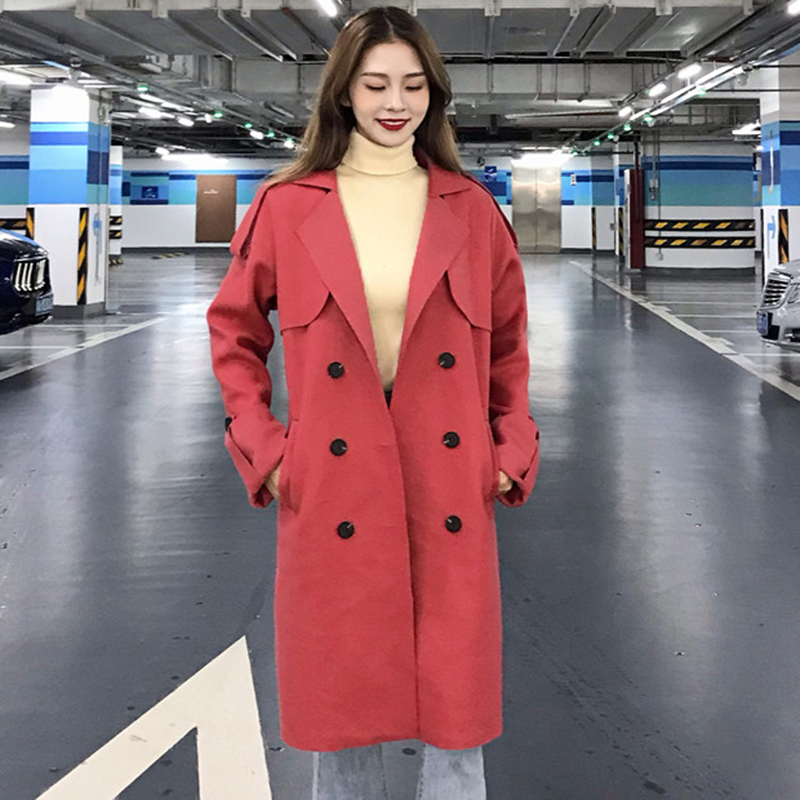 韓版2018流行寬松毛呢外套女秋冬裝新款中長款風衣學生開衫上衣潮