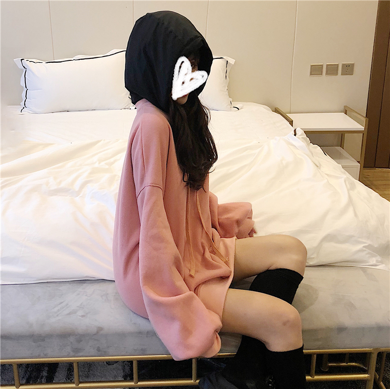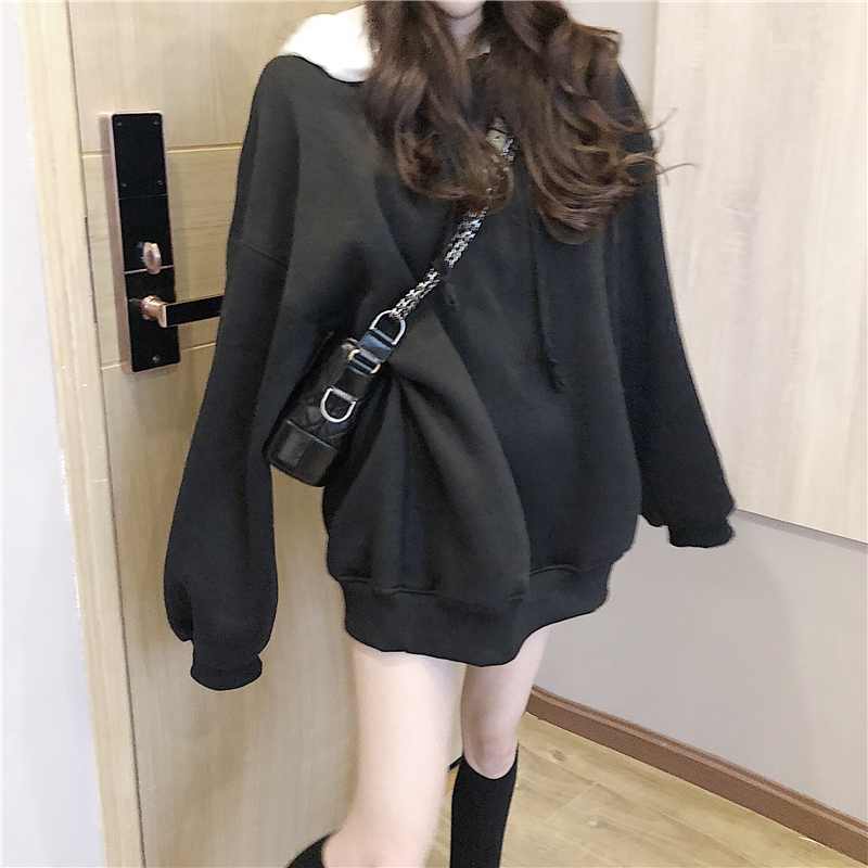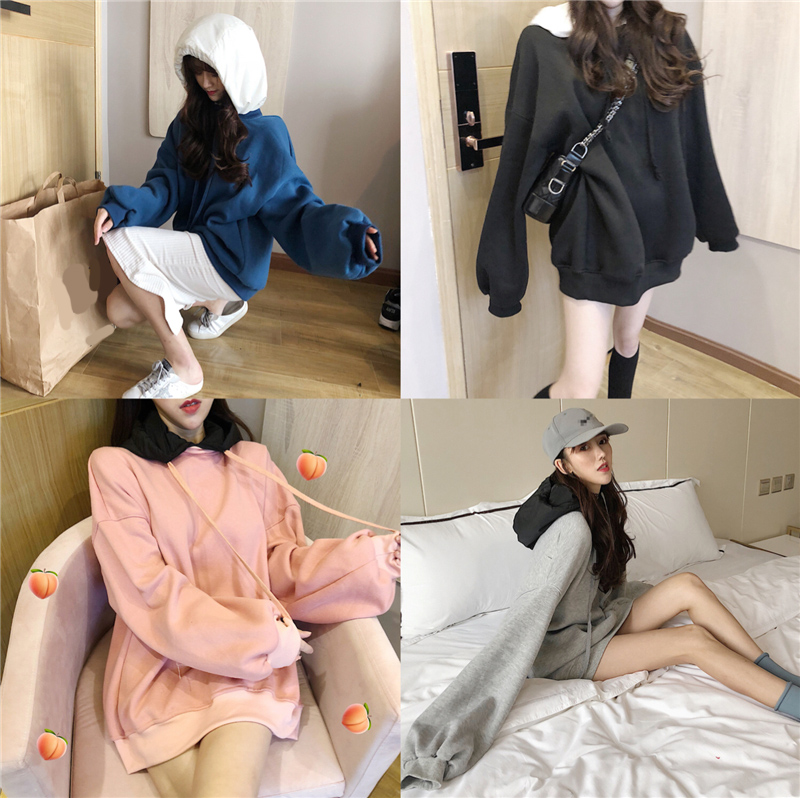/ 韓版寬松新款chic時尚學生純色長袖百搭休閑上衣秋冬連帽加絨衛衣