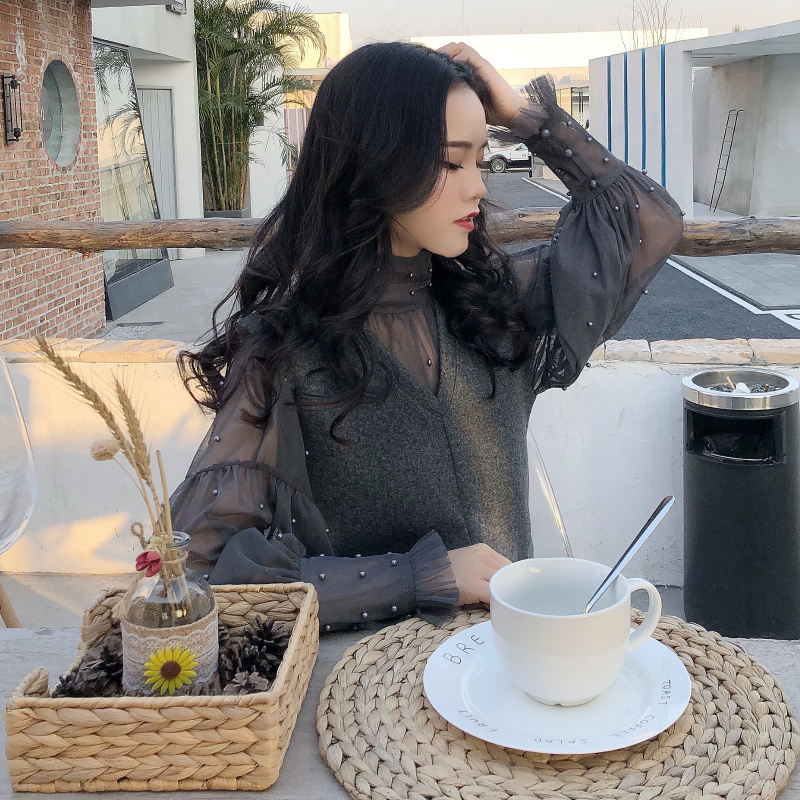 袖口的珍珠扣和衣身釘珠相呼應 協調美觀