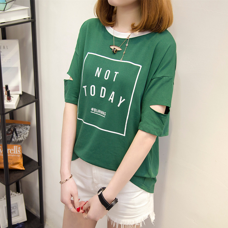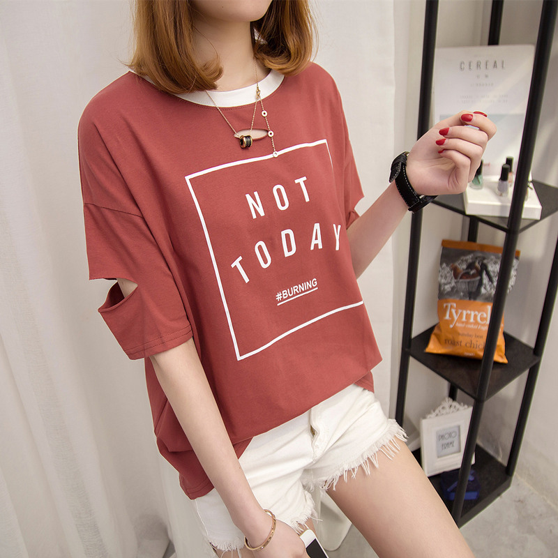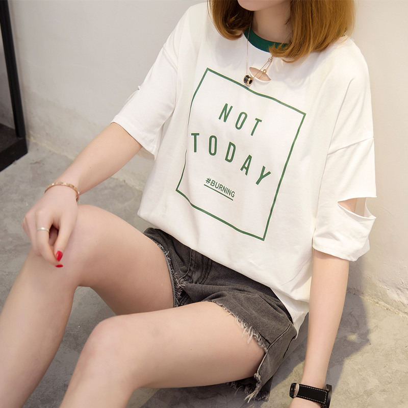 / 短袖上衣女夏新款字母寬松t恤女中長袖半袖韓版打底體恤百搭