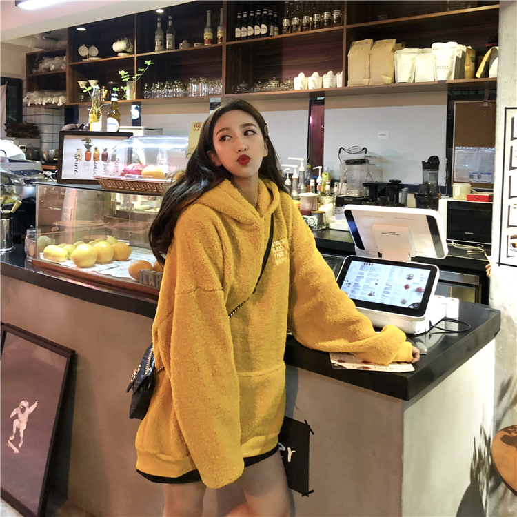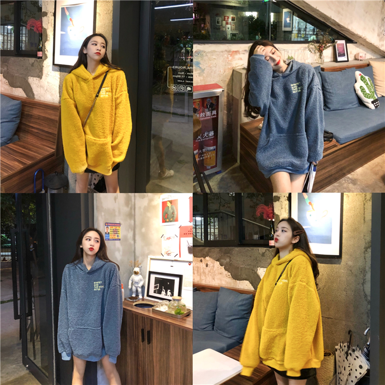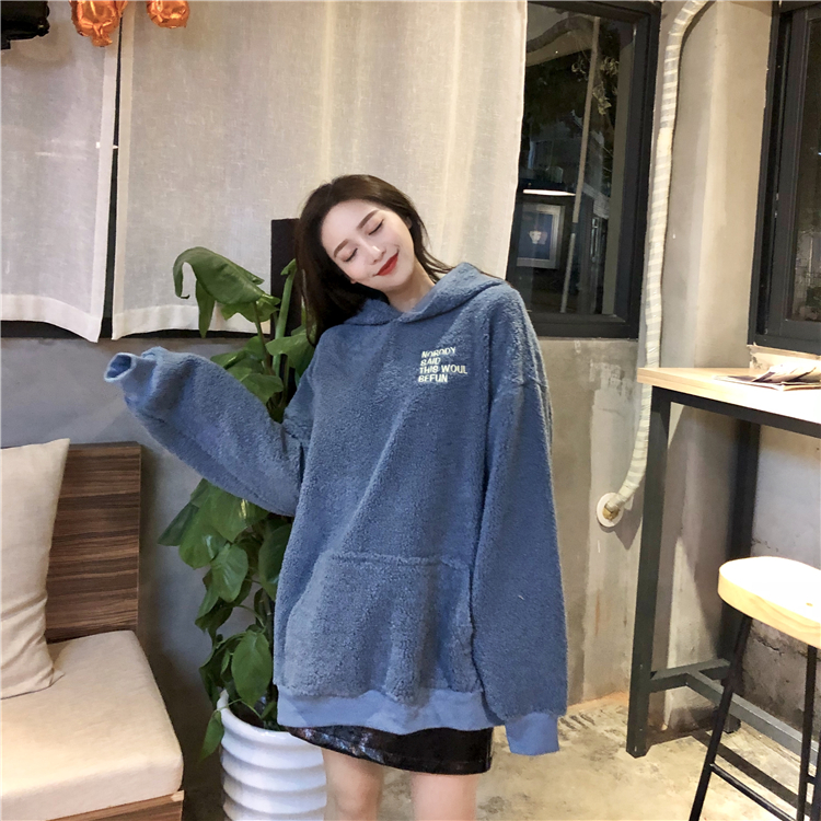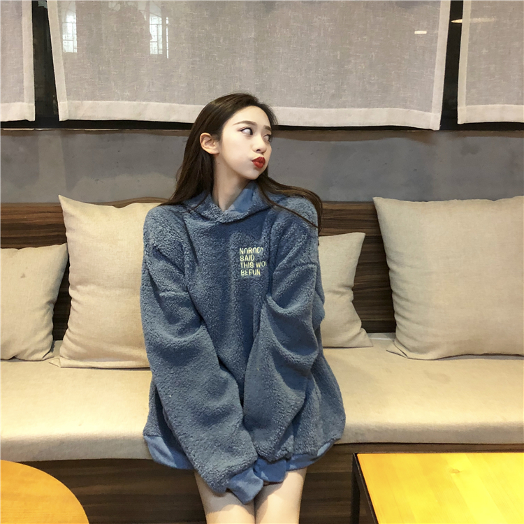 港風chic秋冬加厚新款刺繡時尚韓版氣質套頭寬松連帽百搭衛衣女潮