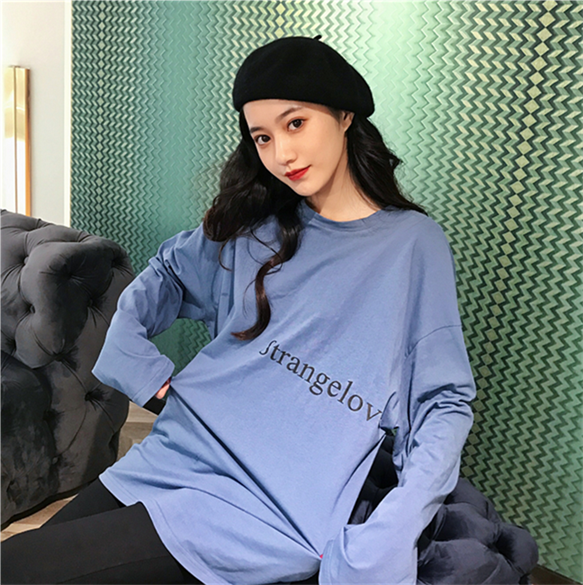 初秋上衣韓版寬松顯瘦百搭長袖打底衫女T恤字母印花時尚打底Tee潮