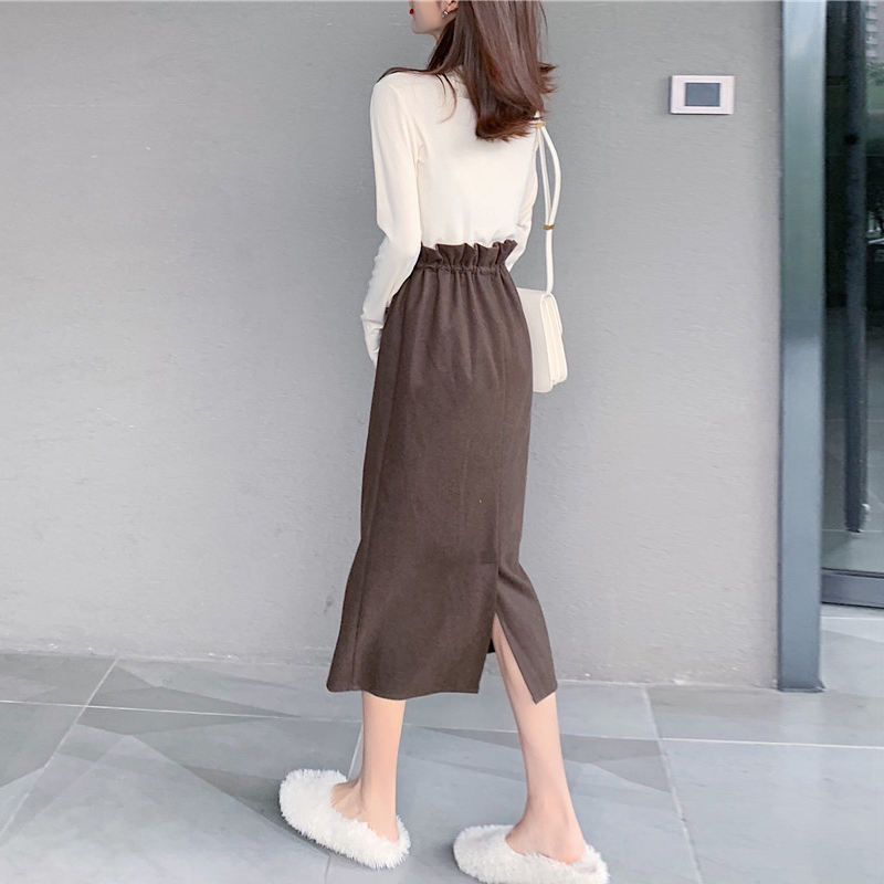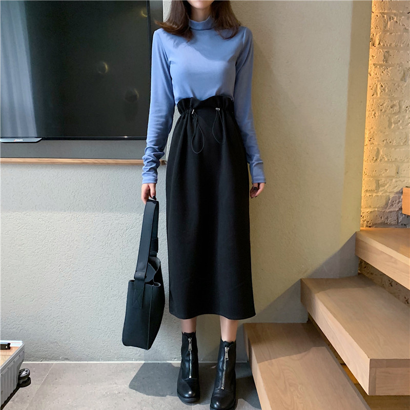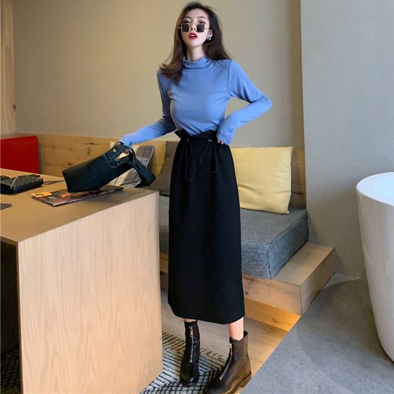 御姐套裝女秋冬新款時尚修身長袖T恤打底衫高腰顯瘦黑色半身裙子
