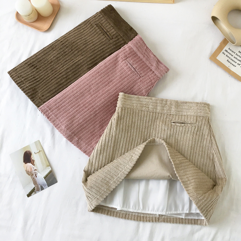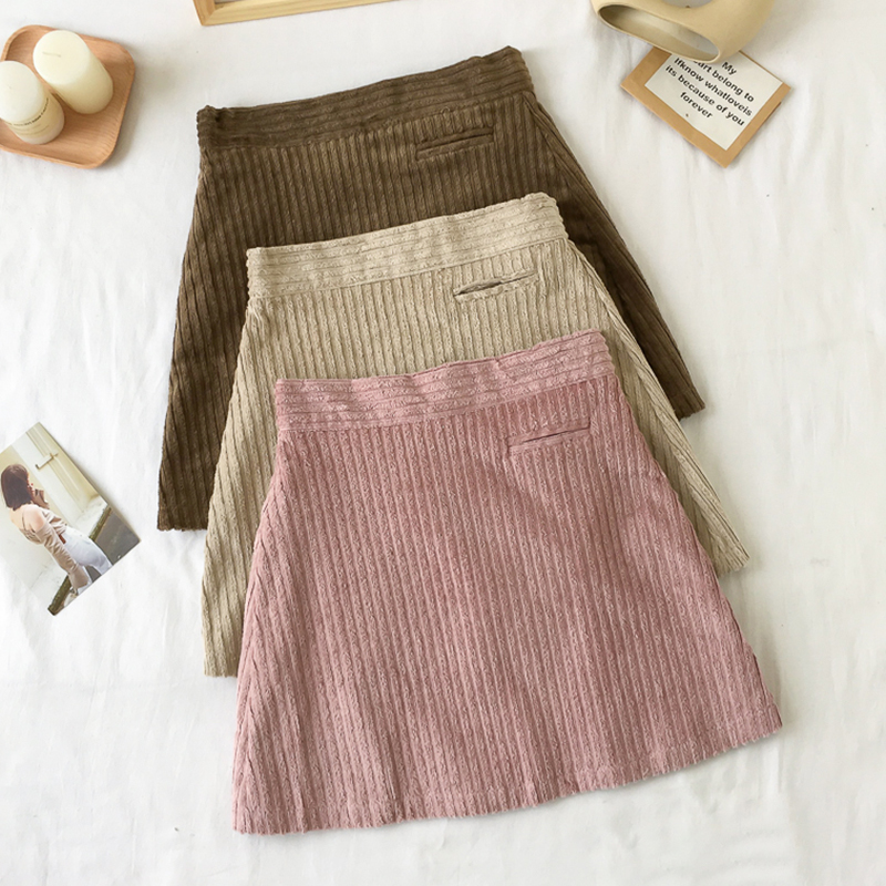 / 秋冬女裝2018新款復古風高腰顯瘦A字短裙學生時尚燈芯絨半身裙子