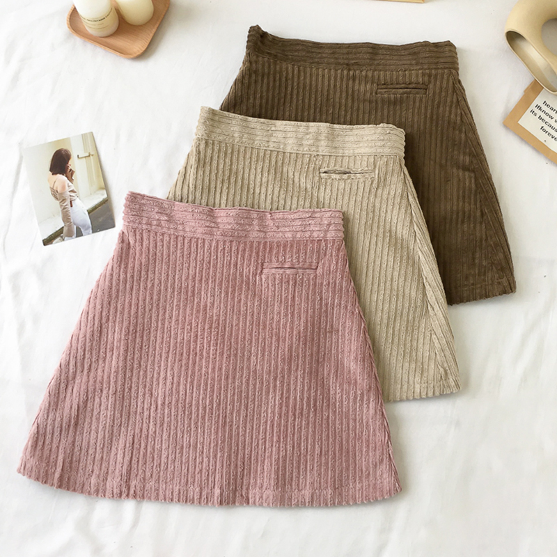 秋冬女裝2018新款復古風高腰顯瘦A字短裙學生時尚燈芯絨半身裙子