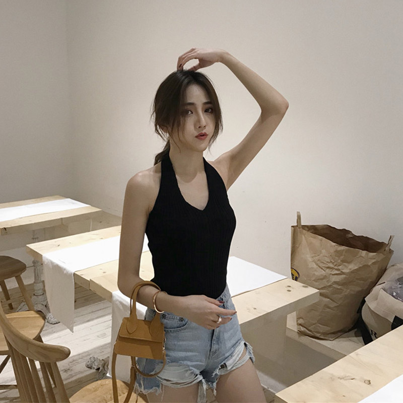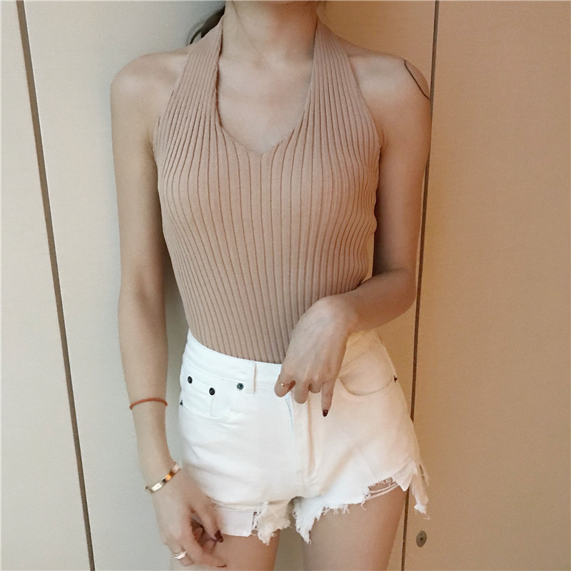 吊帶女夏2018新款修身無袖外穿背心百搭港味復古chic針織掛脖上衣