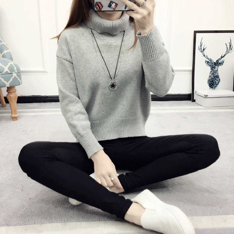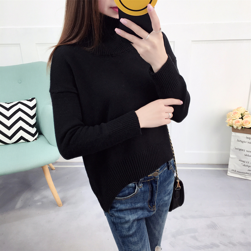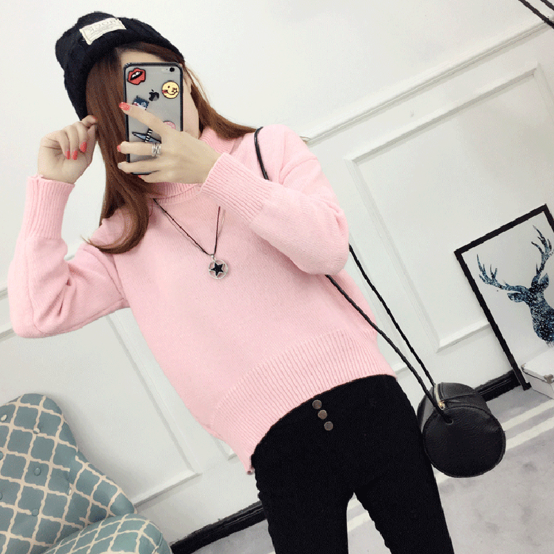 毛衣外套女秋冬裝2018新款韓版學生寬松百搭顯瘦高領長袖針織衫潮
