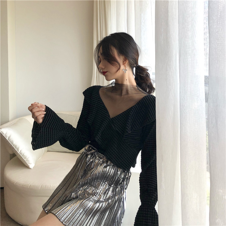 這款美衣是經過特殊壓褶處理和網紗拼接的 打底外穿都好看