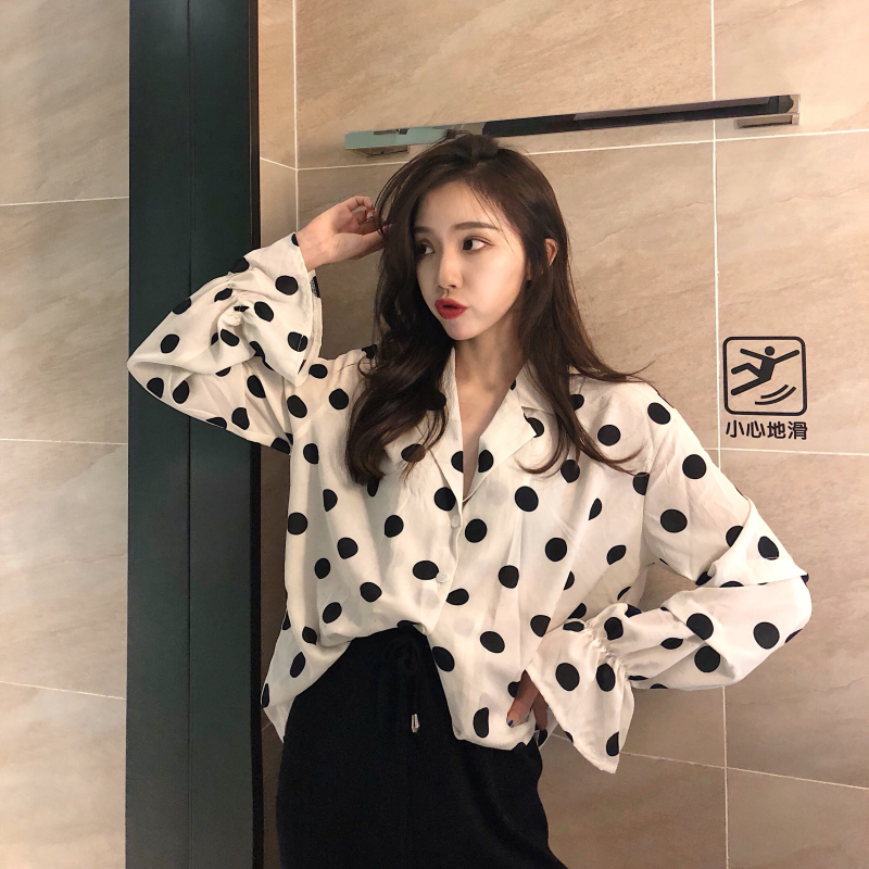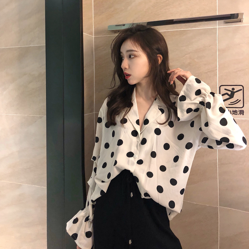 波點上衣|黑色長褲