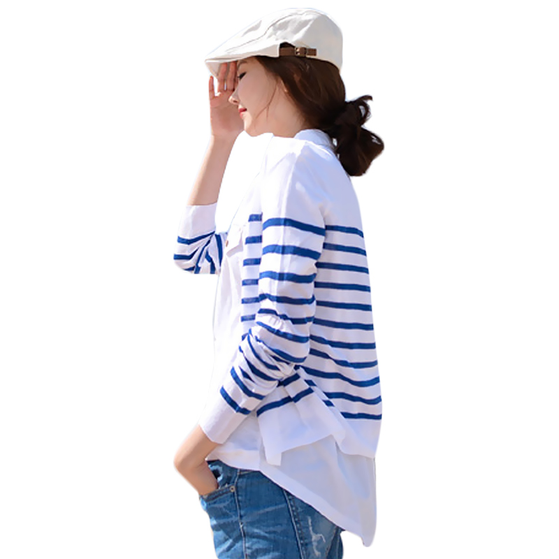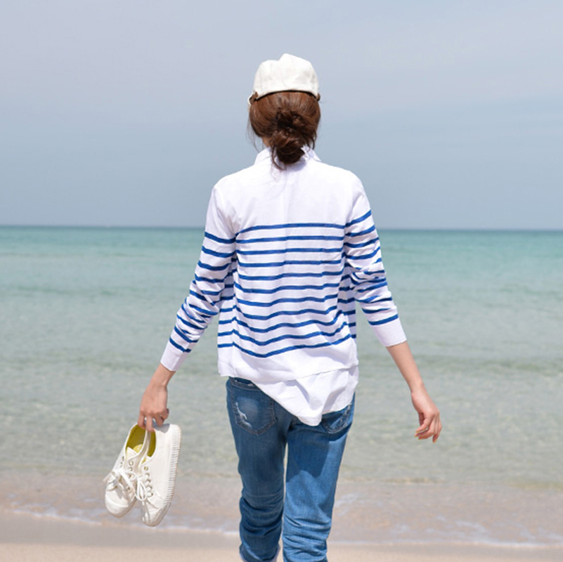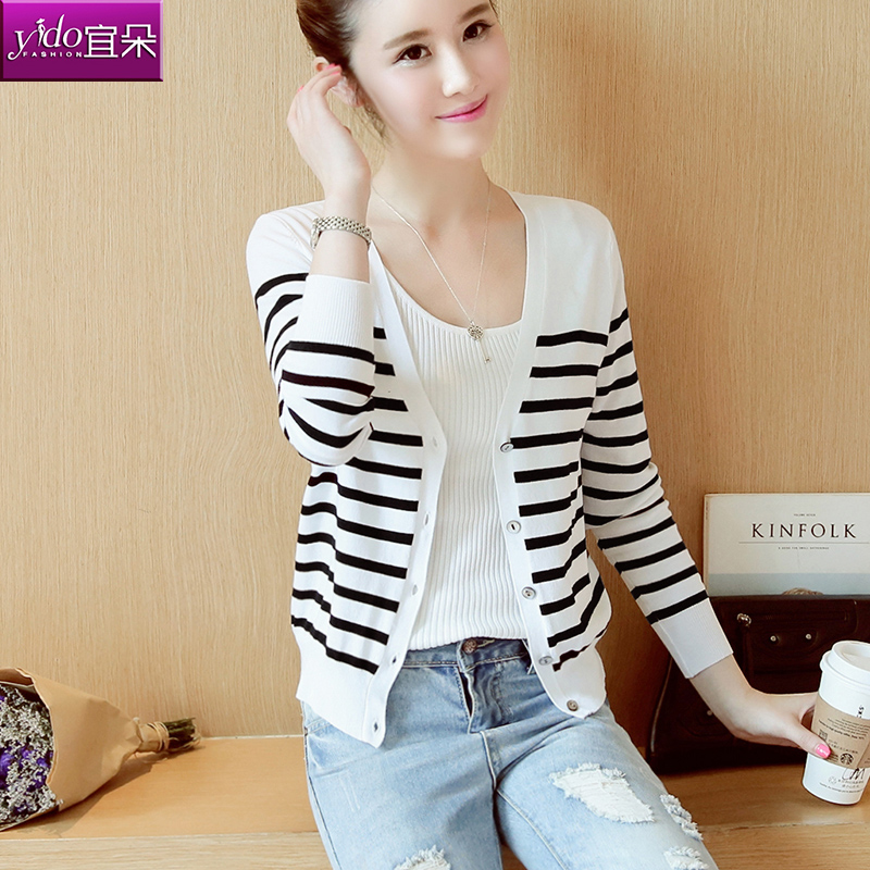 / 條紋針織衫女開衫春季薄款長袖針織開衫外套女修身外搭空調衫