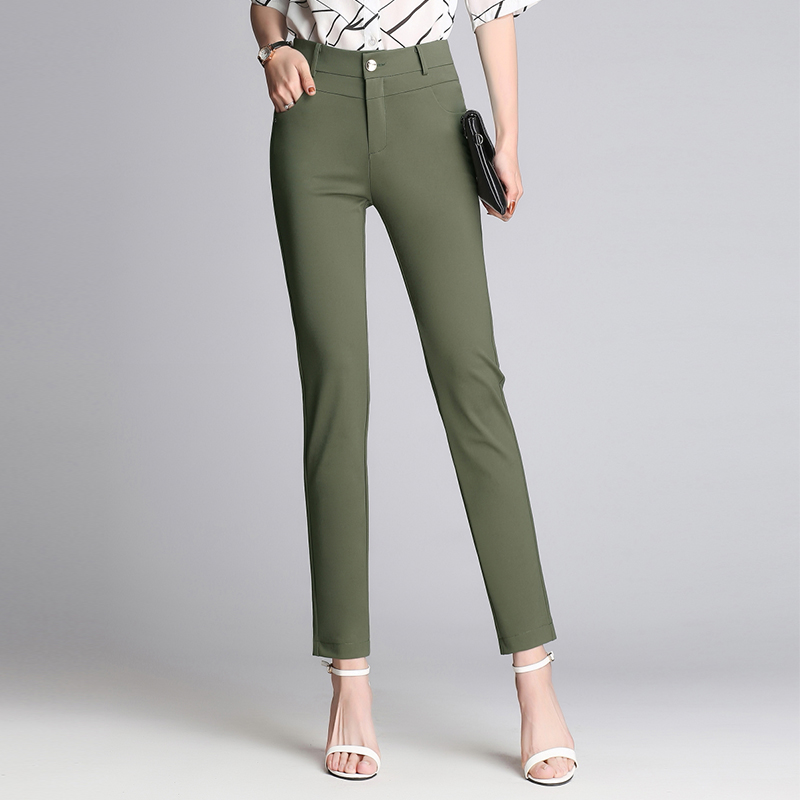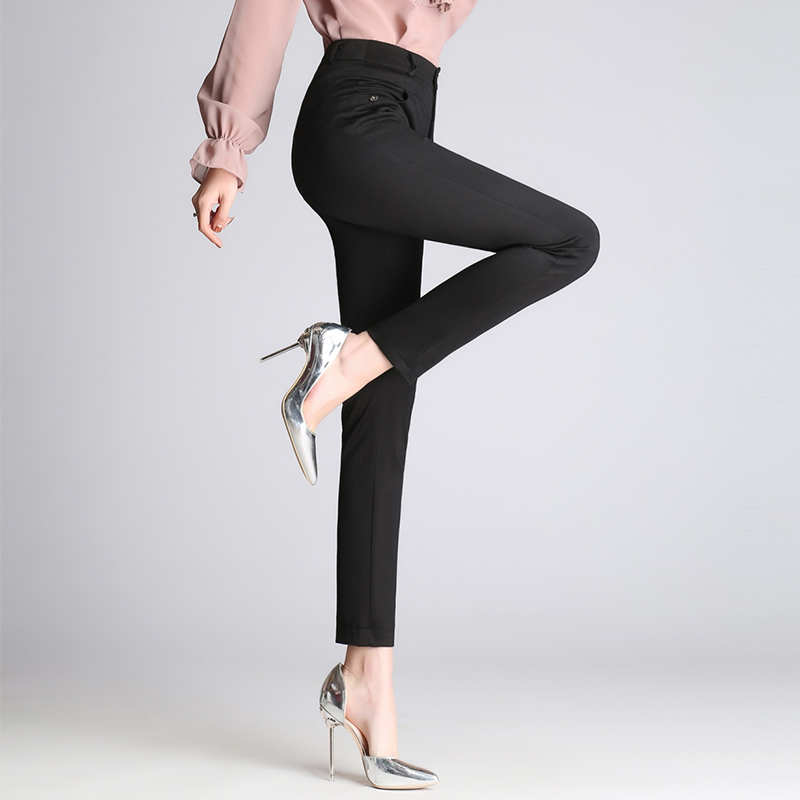 / 夏季黑色彈力九分打底褲女 松緊腰小腳褲薄款韓國魔術褲9分黑褲子