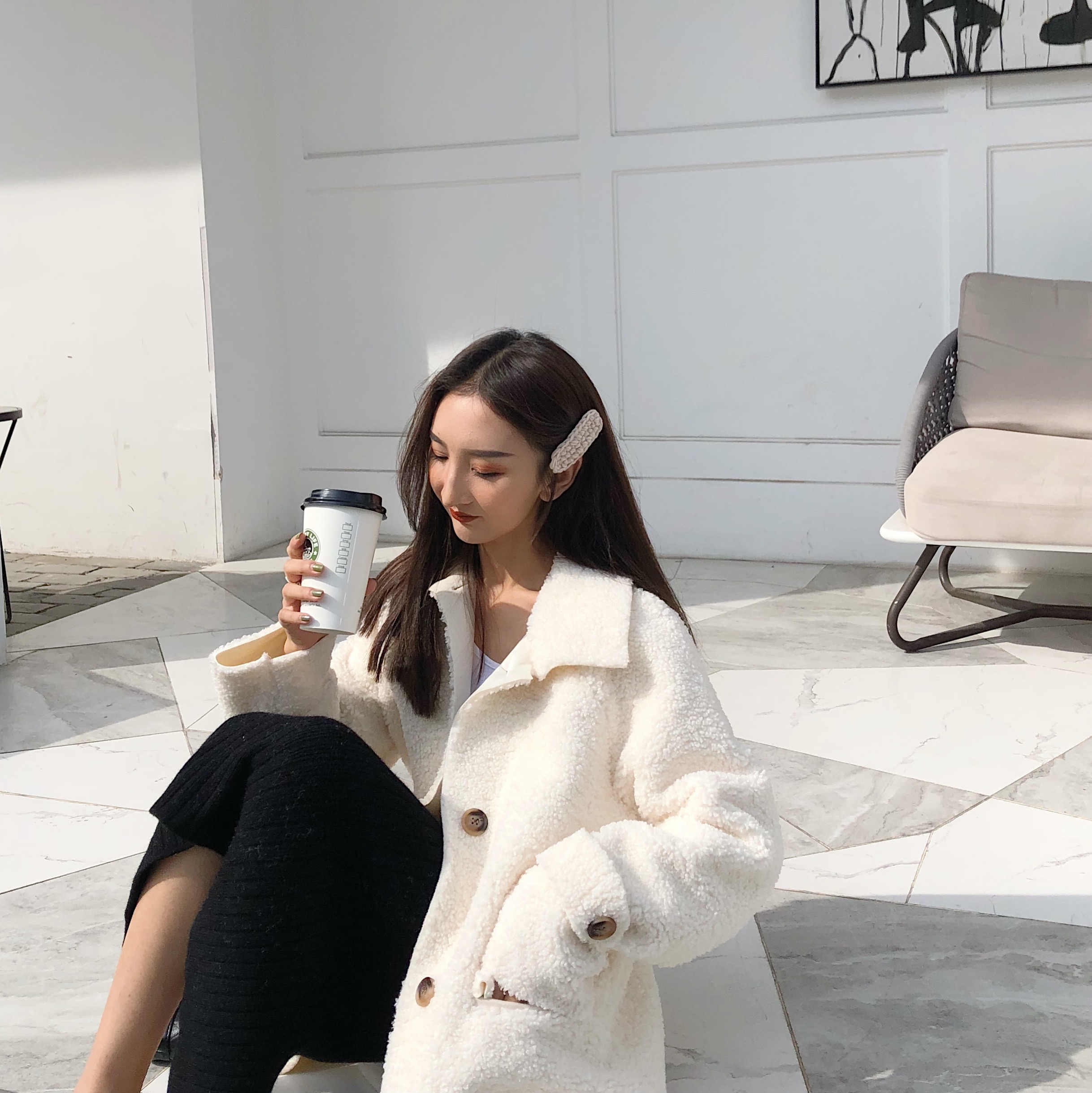 / 毛呢外套女冬季大衣新款2018韓版中長款雙口袋毛絨羊羔毛保暖上衣