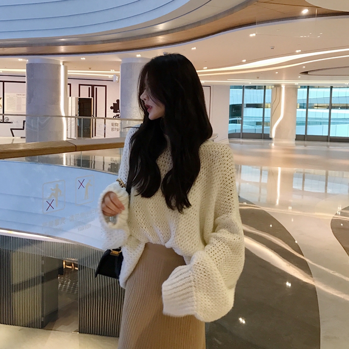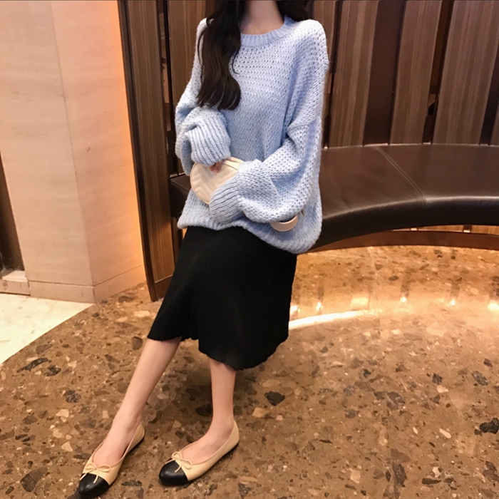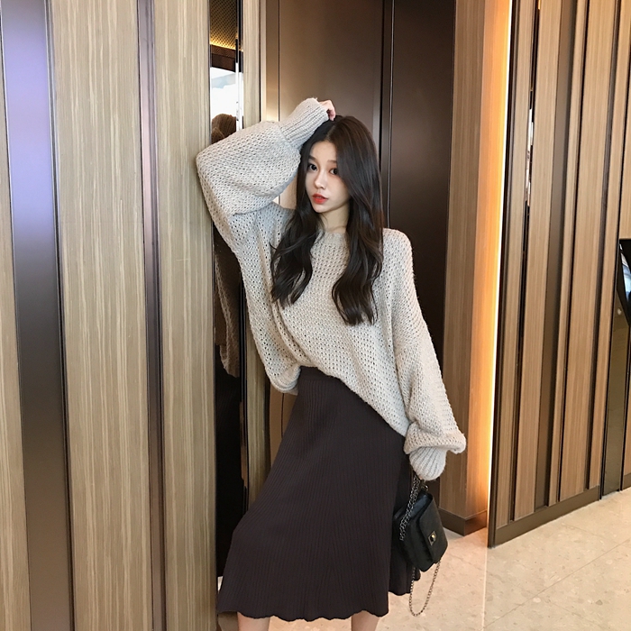 / 2018新款chic慵懶風寬松套頭毛衣高腰包臀針織毛線半身長裙套裝女